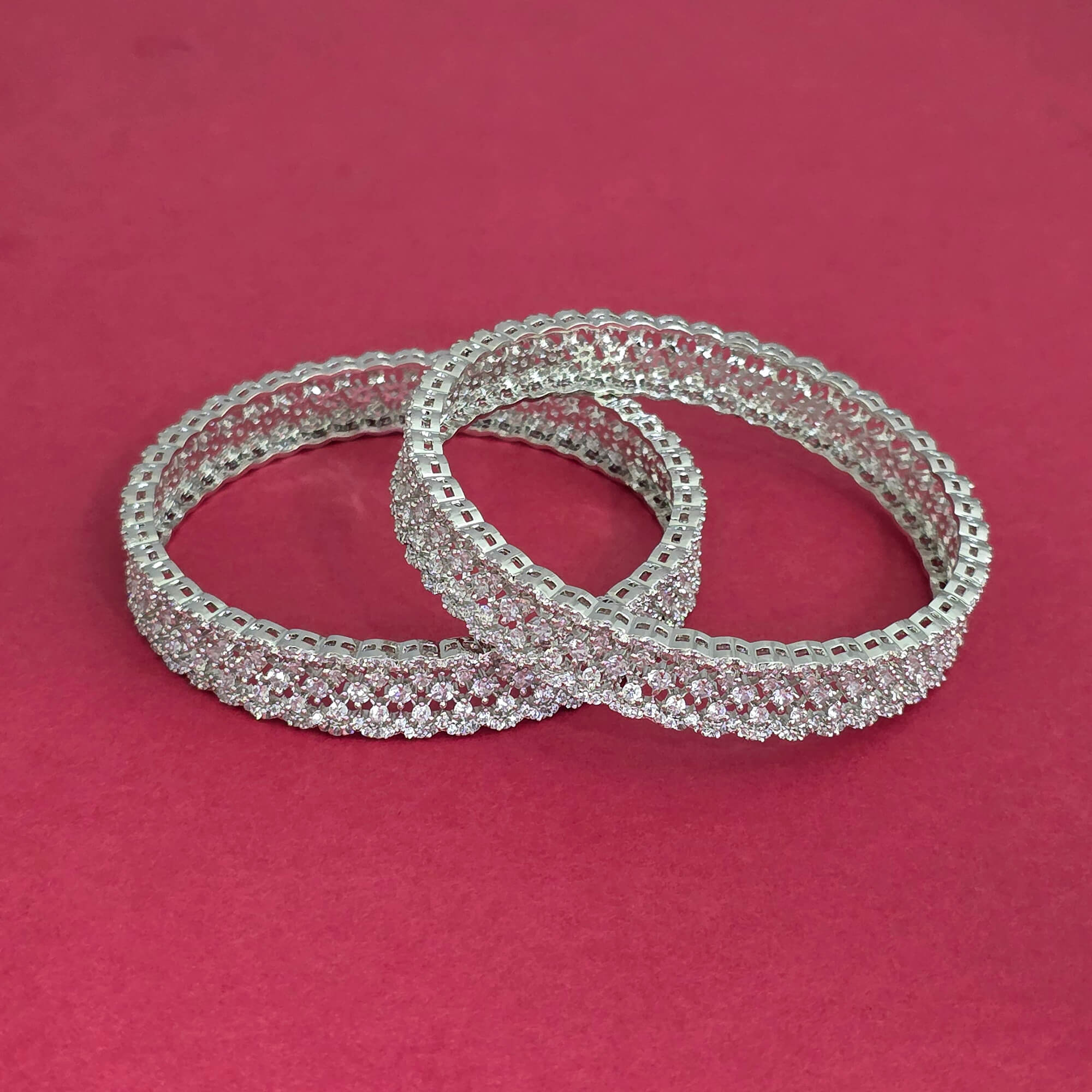 Kanhai Jewels offers an exclusive collection of finest quality crafted Fashion Jewellery in various colors. We make sure that our collection of American Diamond Classic Bangles With Rhodium Plating are beautiful, elegent & will surely galvanize you, because our products are unique, comfortable, fashion forward & very popular for the rich look. Base Metal of our product is Alloy, i.e Mixing of Copper & Brass. We pack all the products using quality packaging material to ensure safe and secure transportation.