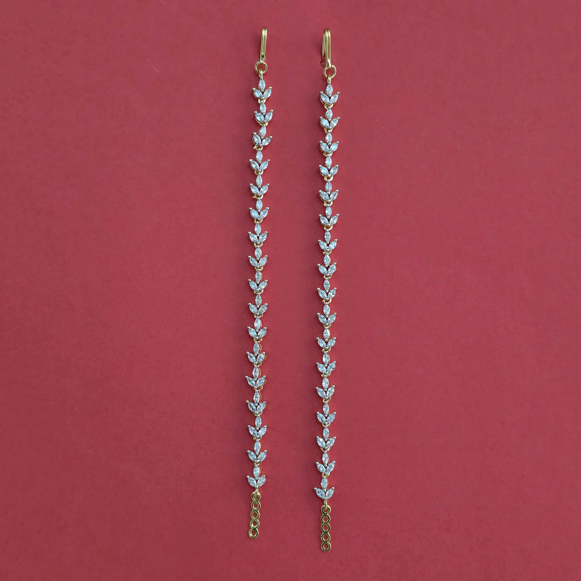 Kanhai Jewels offers an exclusive collection of finest quality crafted Fashion Jewellery in various colors. We make sure that our collection of American Diamond Ear Chain with Rhodium Plating 2 Tone Plating are beautiful, elegant & will surely galvanize you, because our products are unique, comfortable, fashion forward & very popular for the rich look. Base Metal of our product is Alloy, i.e mixing of Copper & Brass. We pack all the products using quality packaging material to ensure safe and secure transportation.