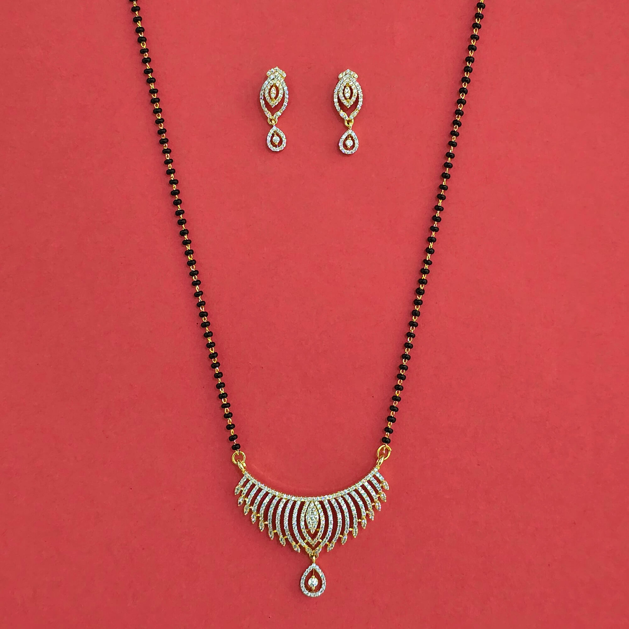 Kanhai Jewels offers an exclusive collection of finest quality crafted Fashion Jewellery in various colors. We make sure that our collection of American Diamond Mangalsutra with 2 Tone Plating are beautiful, elegant & will surely galvanize you, because our products are unique, comfortable, fashion forward & very popular for the rich look. Base Metal of our product is Alloy, i.e mixing of Copper & Brass. We pack all the products using quality packaging material to ensure safe and secure transportation.