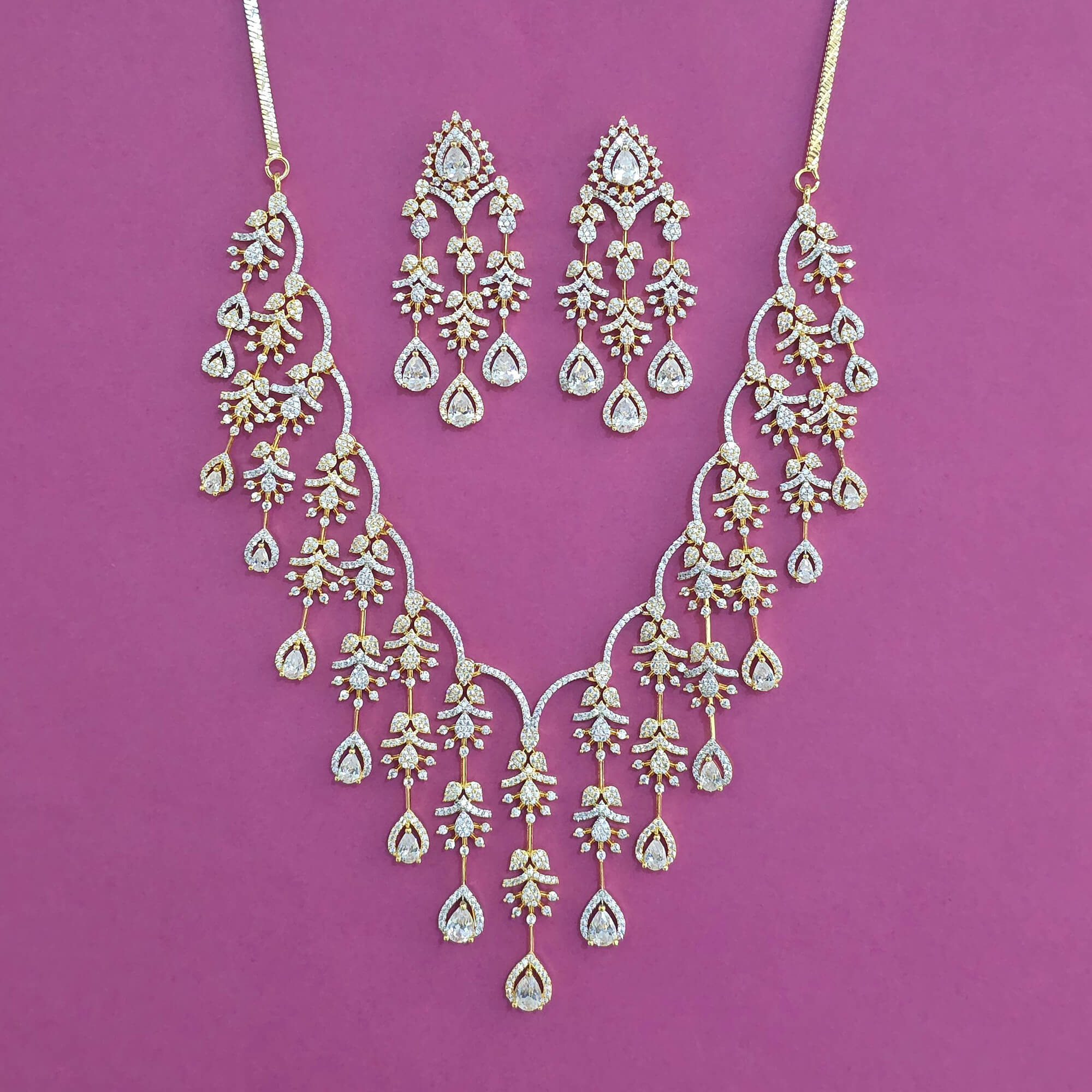 Home / American Diamond Necklace / american diamond classic necklace with 2 tone plating