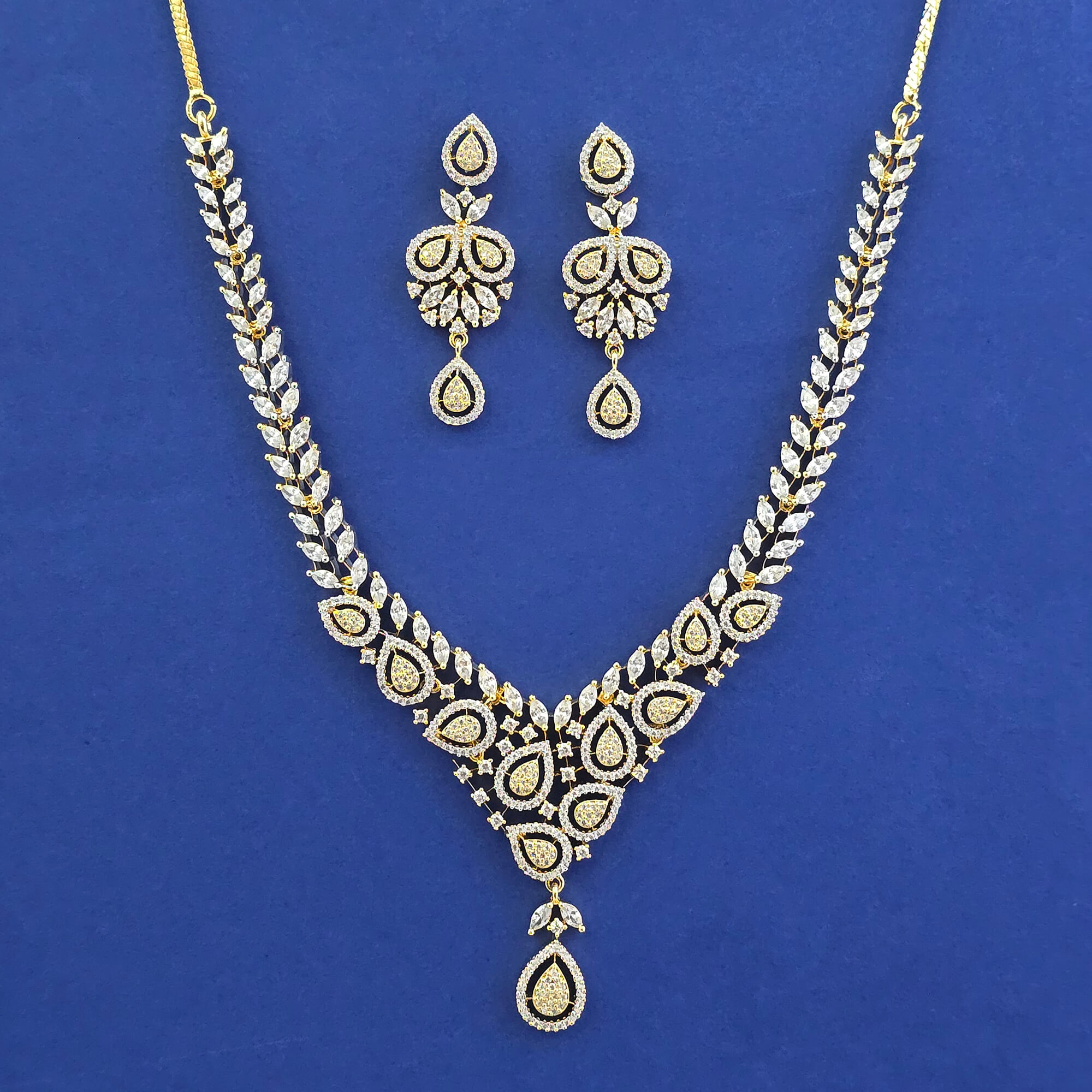 Kanhai Jewels offers an exclusive collection of finest quality crafted Fashion Jewellery in various colors. We make sure that our collection of American Diamond Necklace with 2 Tone Plating are beautiful, elegant & will surely galvanize you, because our products are unique, comfortable, fashion forward & very popular for the rich look. Base Metal of our product is Alloy, i.e mixing of Copper & Brass. We pack all the products using quality packaging material to ensure safe and secure transportation.
