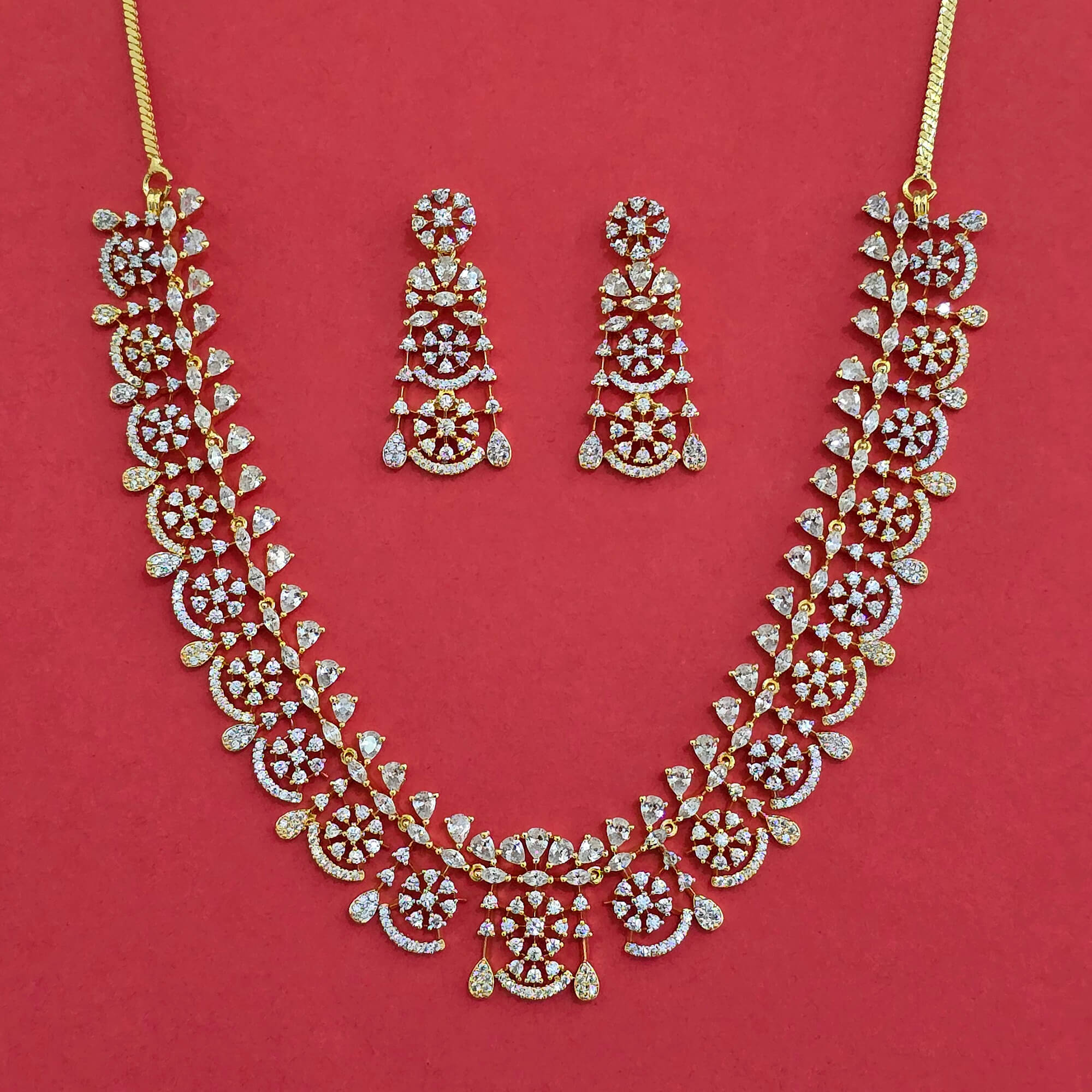 Home / American Diamond Necklace / american diamond classic necklace with 2 tone plating