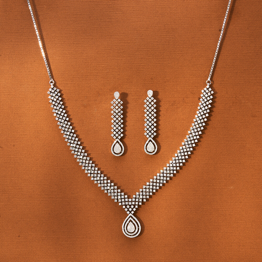 Kanhai Jewels offers an exclusive collection of finest quality crafted Fashion Jewellery in various colors. We make sure that our collection of American Diamond Classic Necklace With 2 Tone Rhodium Plating are beautiful, elegent & will surely galvanize you, because our products are unique, comfortable, fashion forward & very popular for the rich look. Base Metal of our product is Alloy, i.e Mixing of Copper & Brass. We pack all the products using quality packaging material to ensure safe and secure transportation.