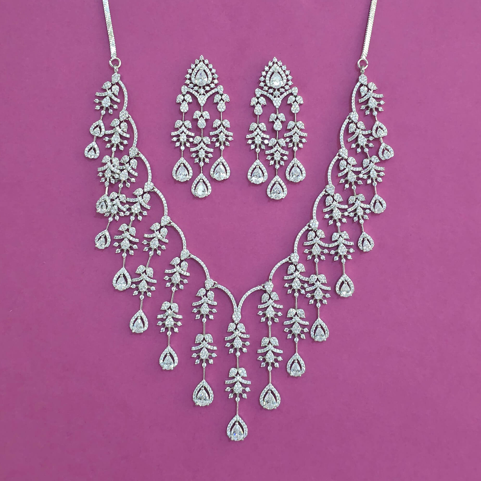 Kanhai Jewels offers an exclusive collection of finest quality crafted Fashion Jewellery in various colors. We make sure that our collection of American Diamond Classic Necklace With Rhodium Plating are beautiful, elegant & will surely galvanize you, because our products are unique, comfortable, fashion forward & very popular for the rich look. Base Metal of our product is Alloy, i.e mixing of Copper & Brass. We pack all the products using quality packaging material to ensure safe and secure transportation.