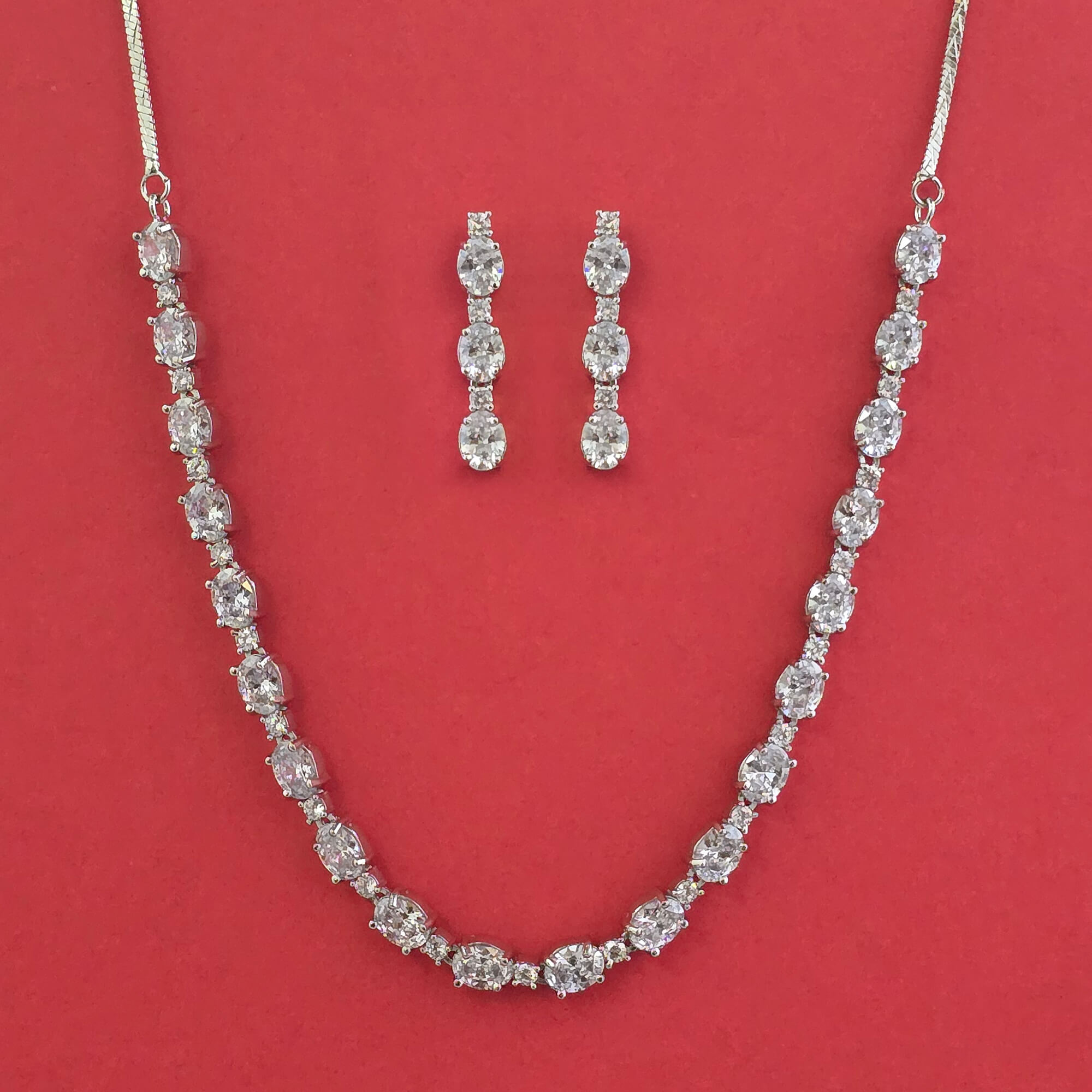 Home / American Diamond Necklace / american diamond classic necklace with rhodium plating