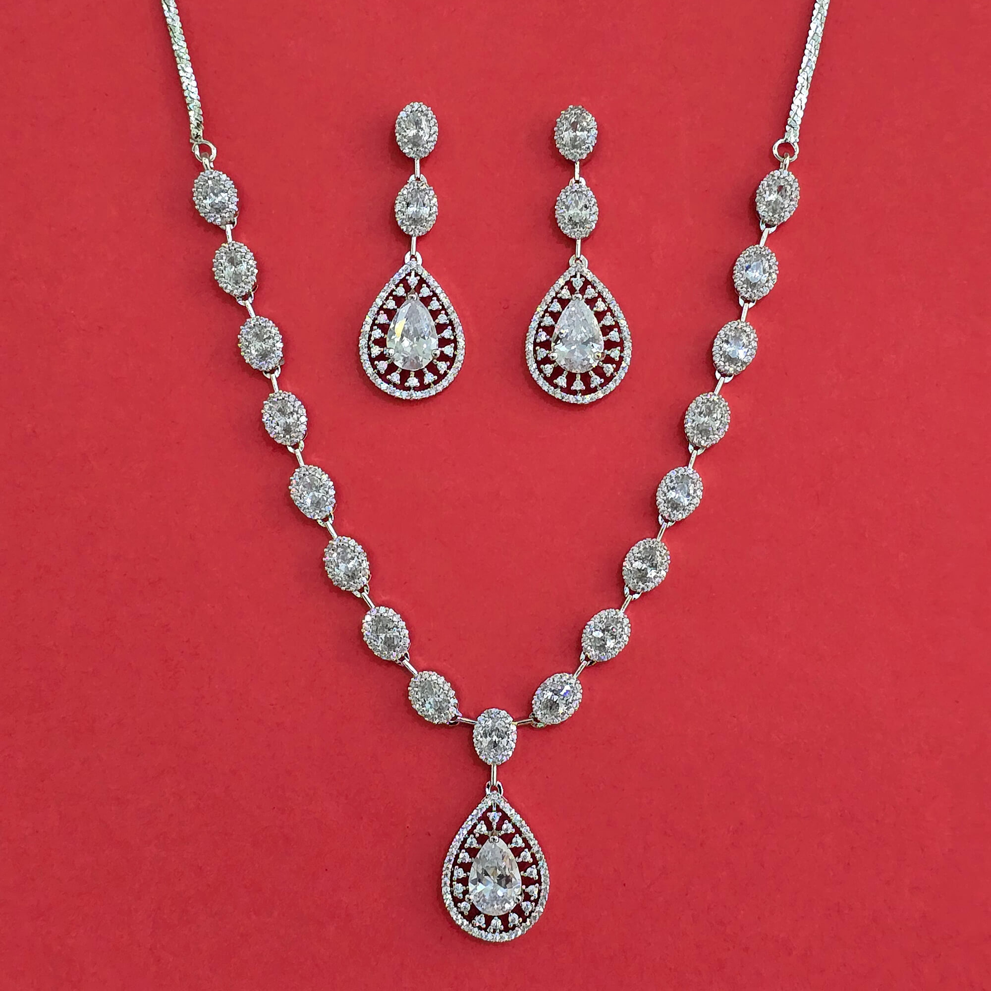 Home / American Diamond Necklace / american diamond classic necklace with rhodium plating