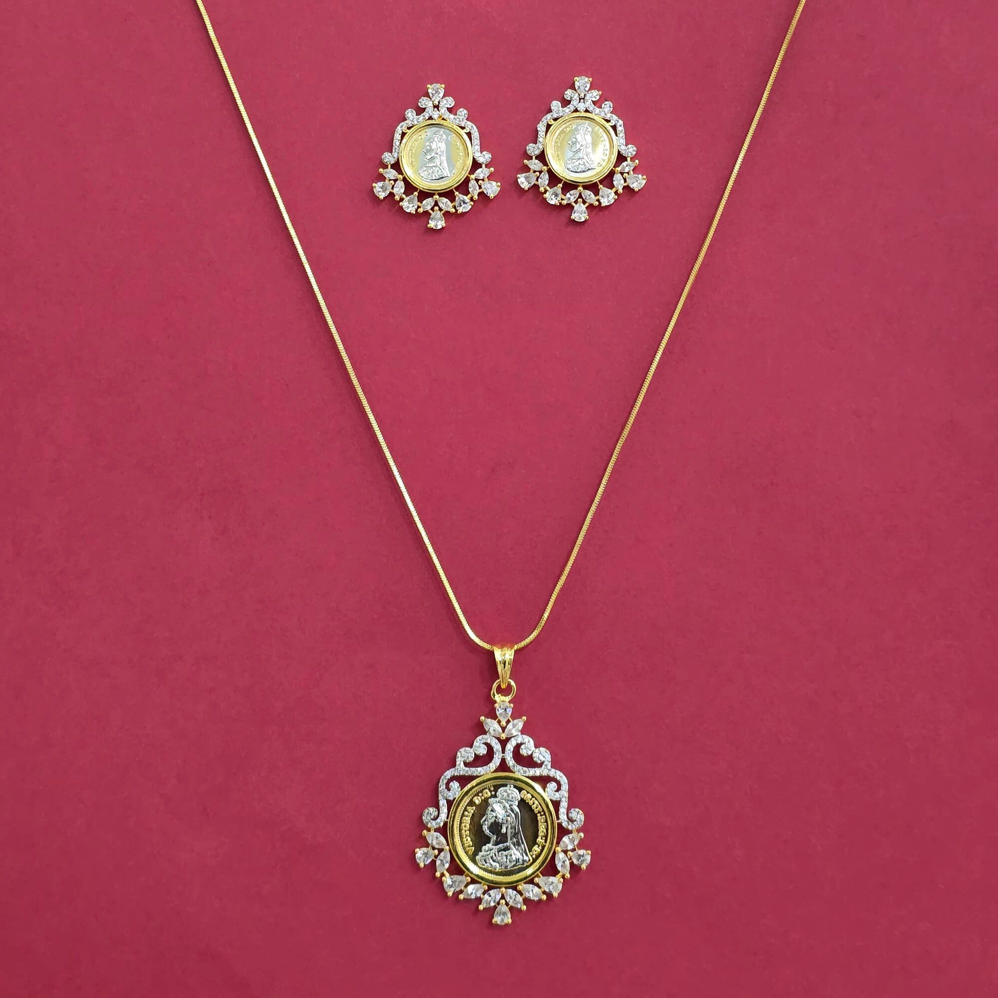 • American Diamond Classic Pendant Set With 2 Tone Plating