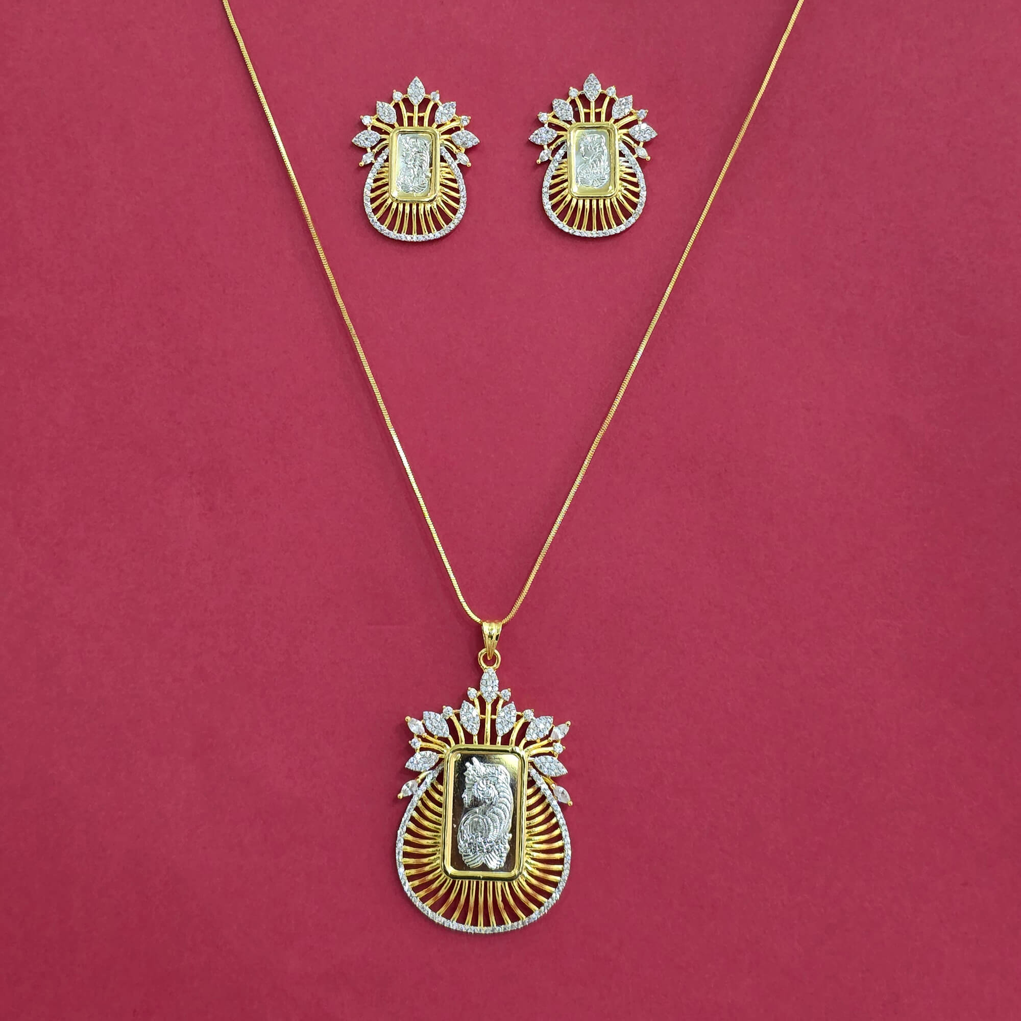 • American Diamond Classic Pendant Set With 2 Tone Plating