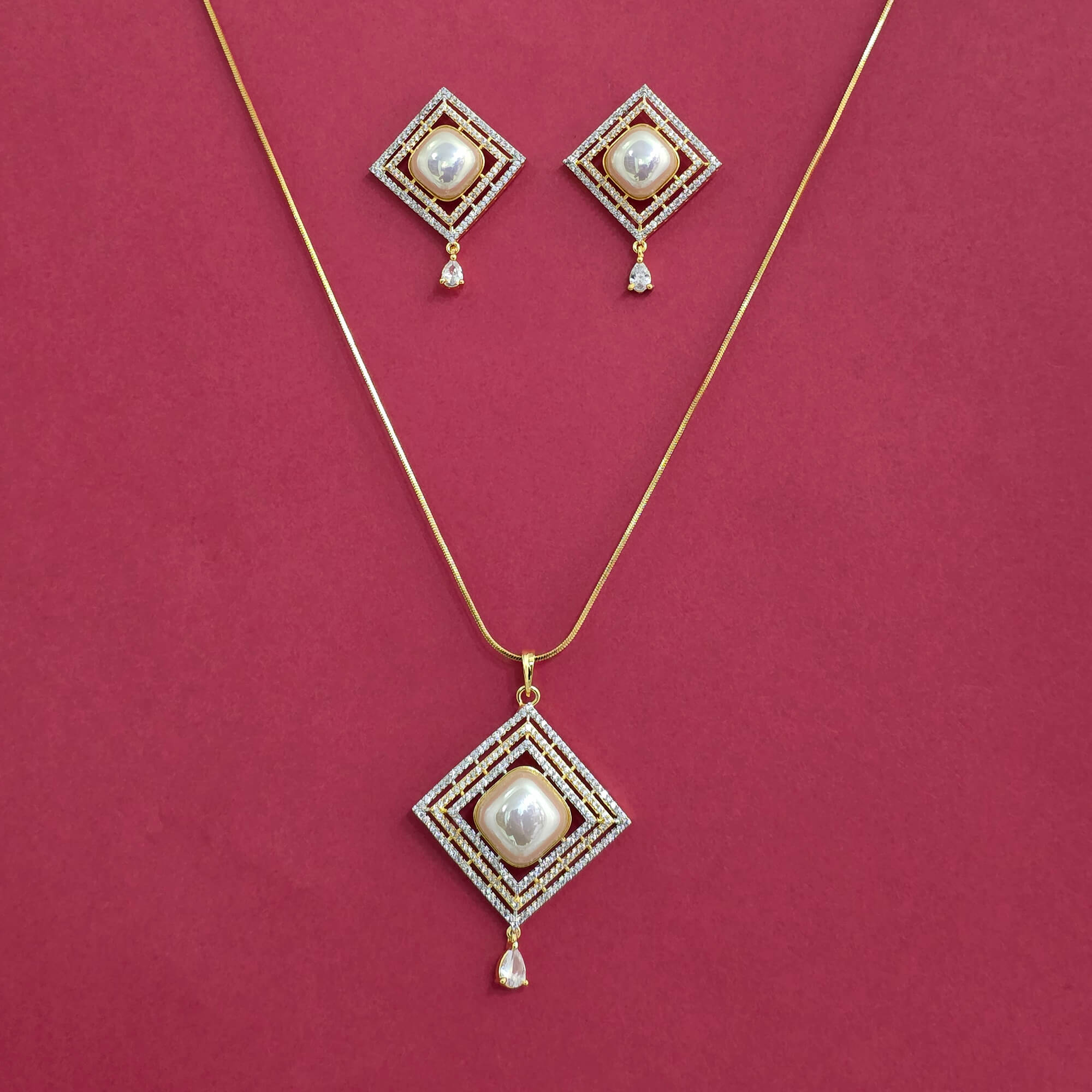 • American Diamond Classic Pendant Set With 2 Tone Plating