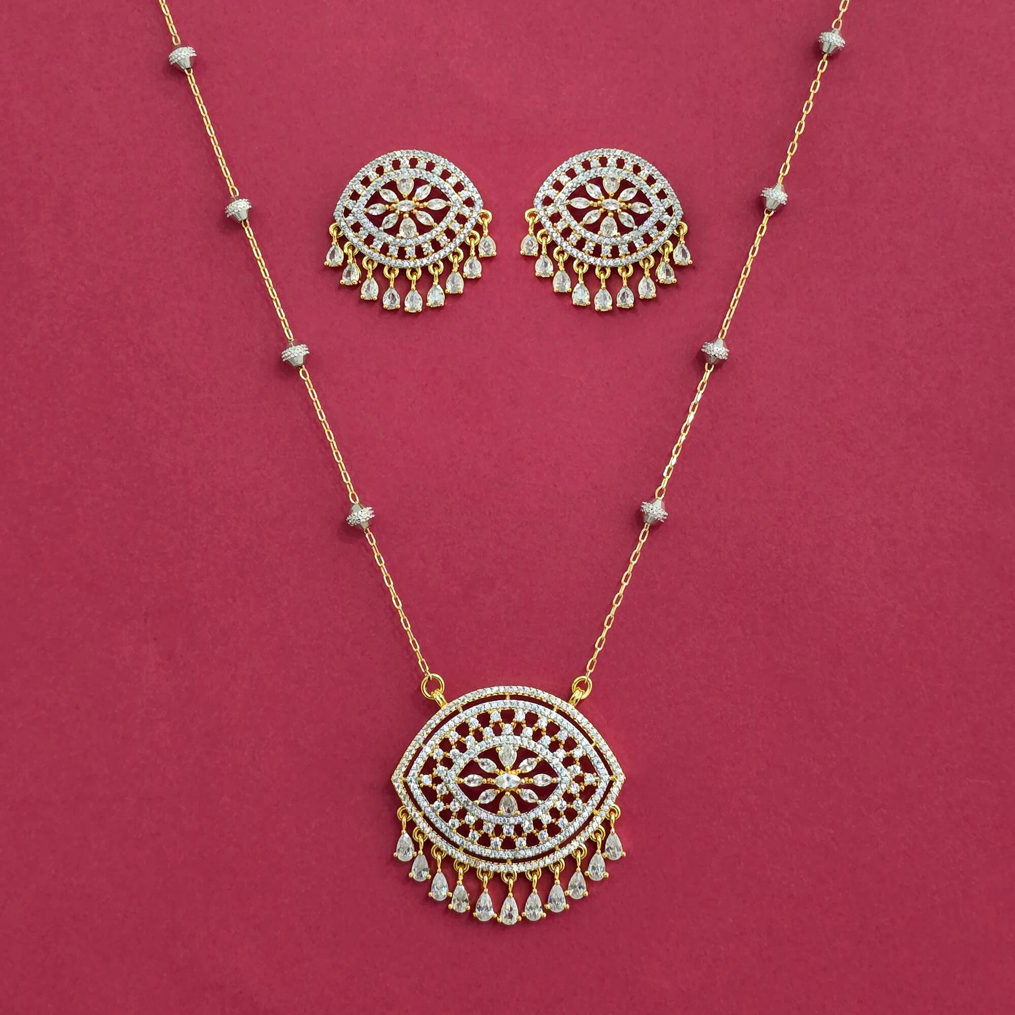 • American Diamond Classic Pendant Set With 2 Tone Plating