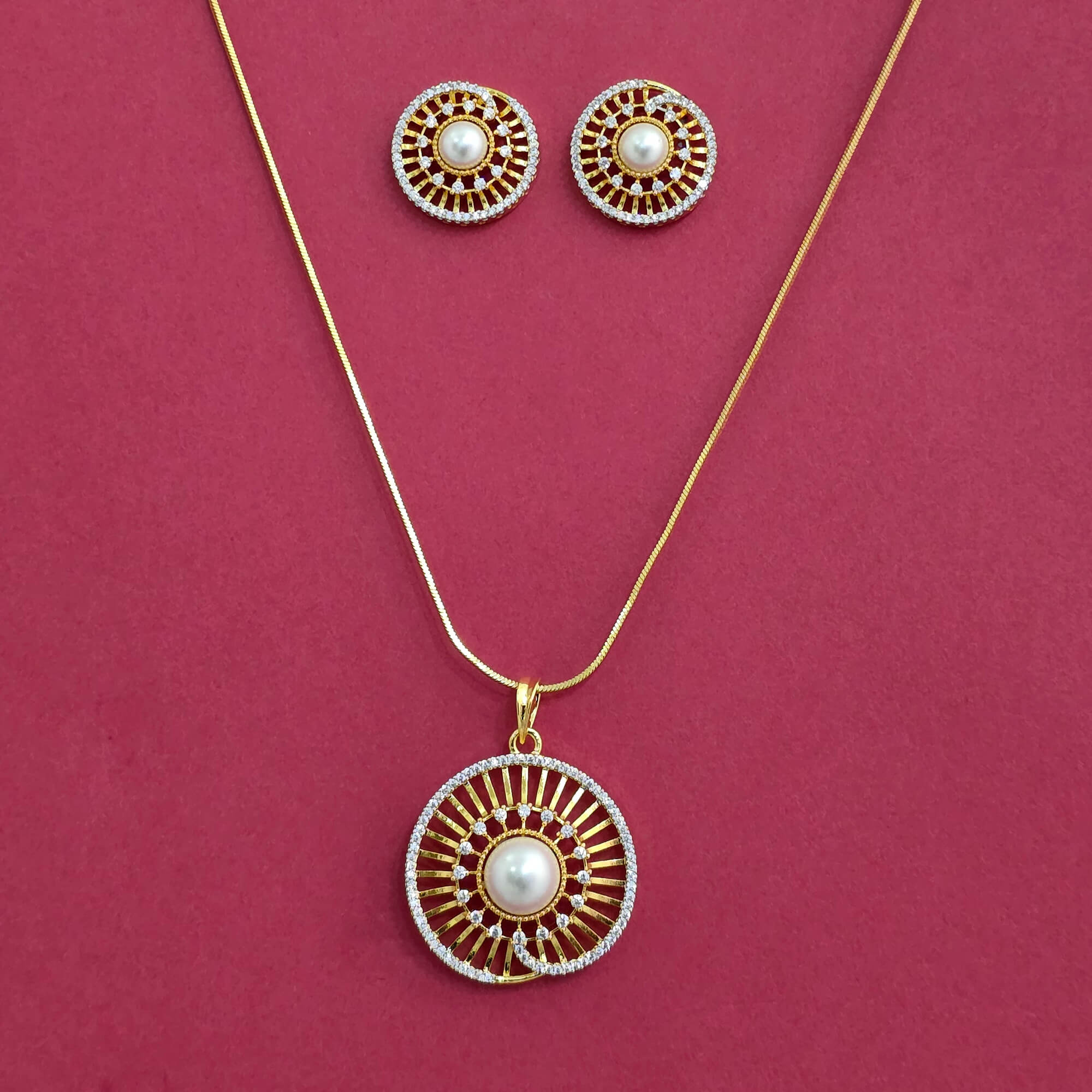 • American Diamond Classic Pendant Set With 2 Tone Plating
