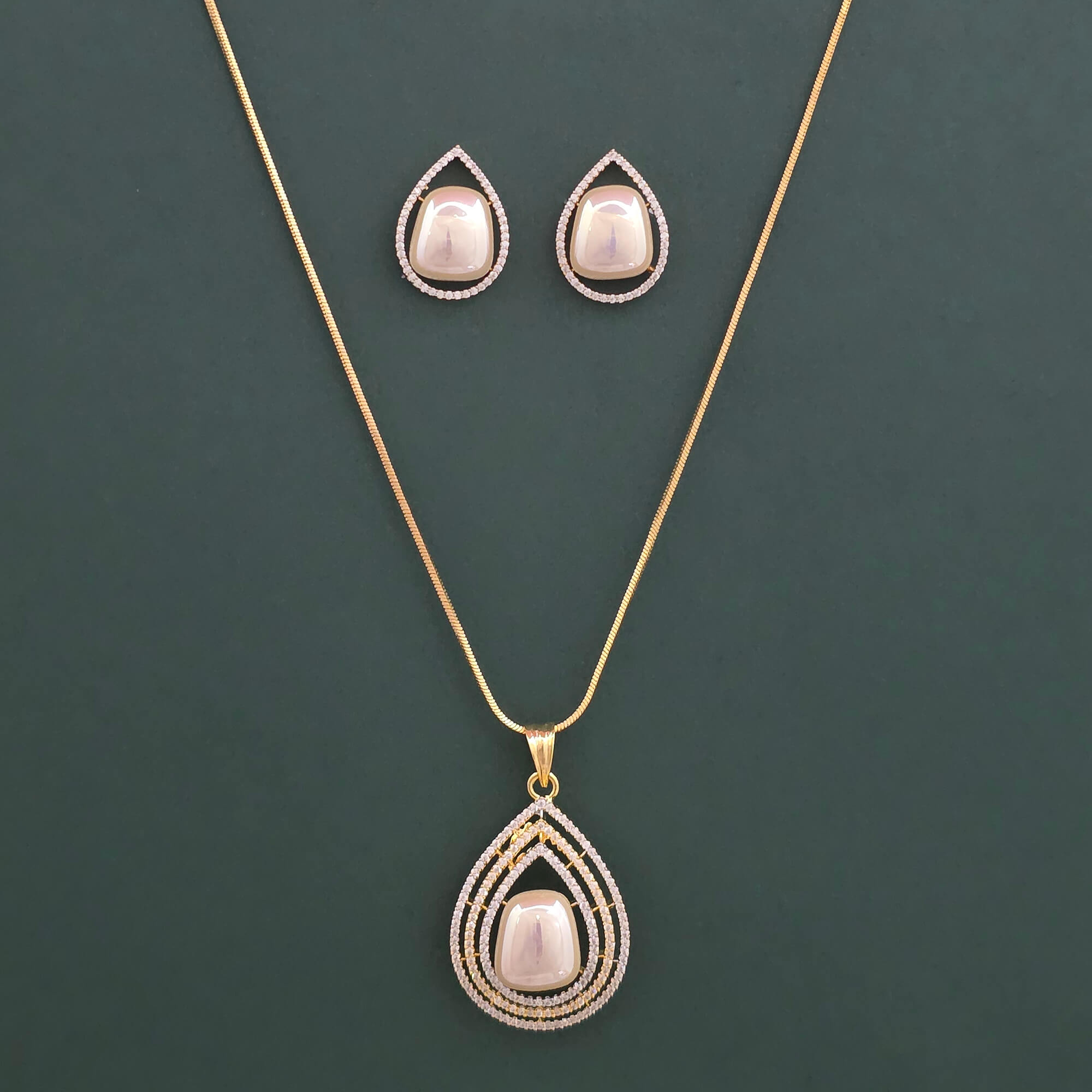 • American Diamond Classic Pendant Set with 2 Tone Plating