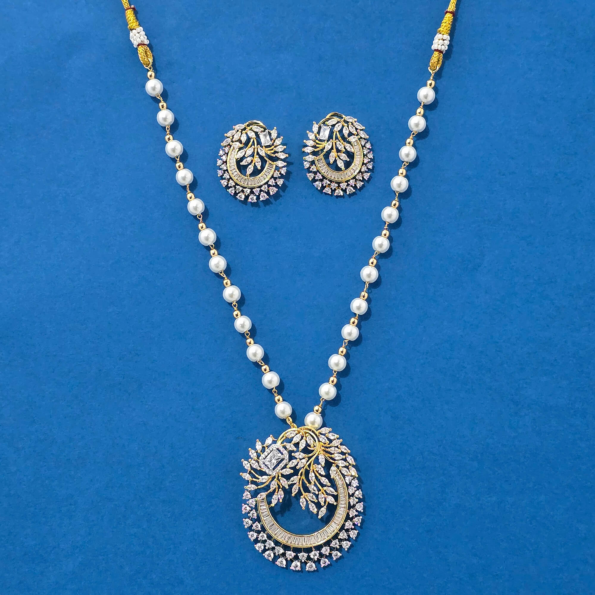 Home / American Diamond Pendant Set / american diamond classic pendant set with 2 tone rhodium plating