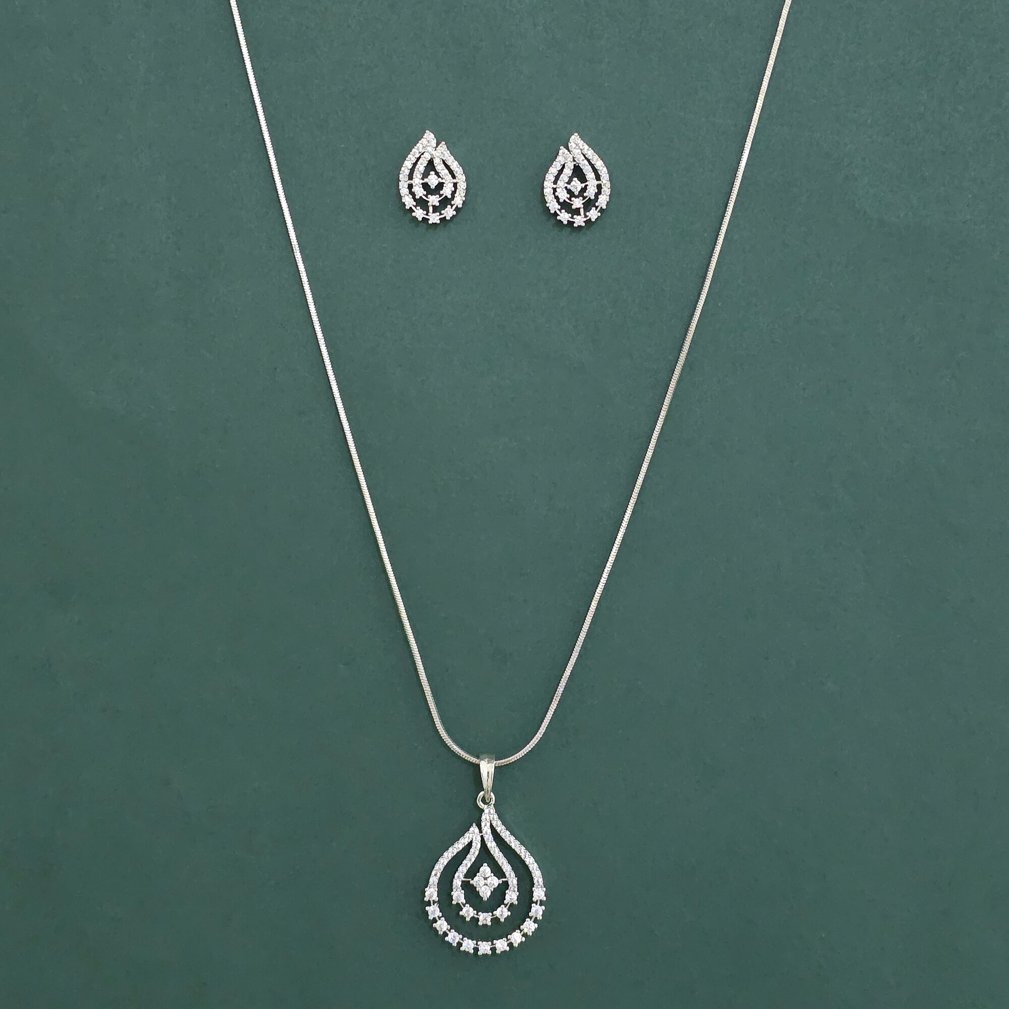 • American Diamond Classic Pendant Set with Rhodium Plating