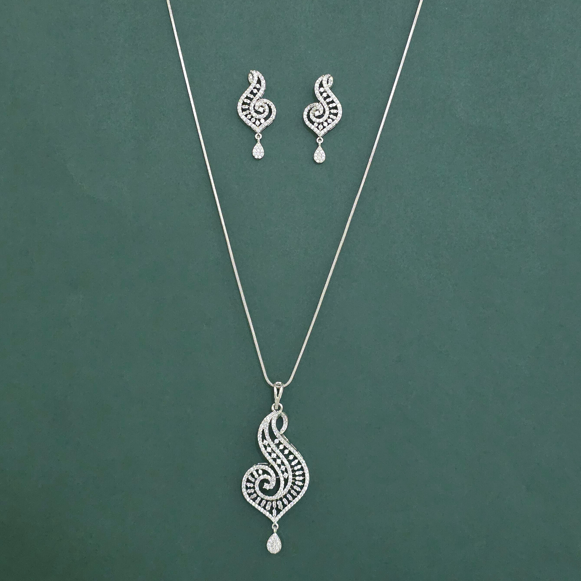 • American Diamond Classic Pendant Set with Rhodium Plating