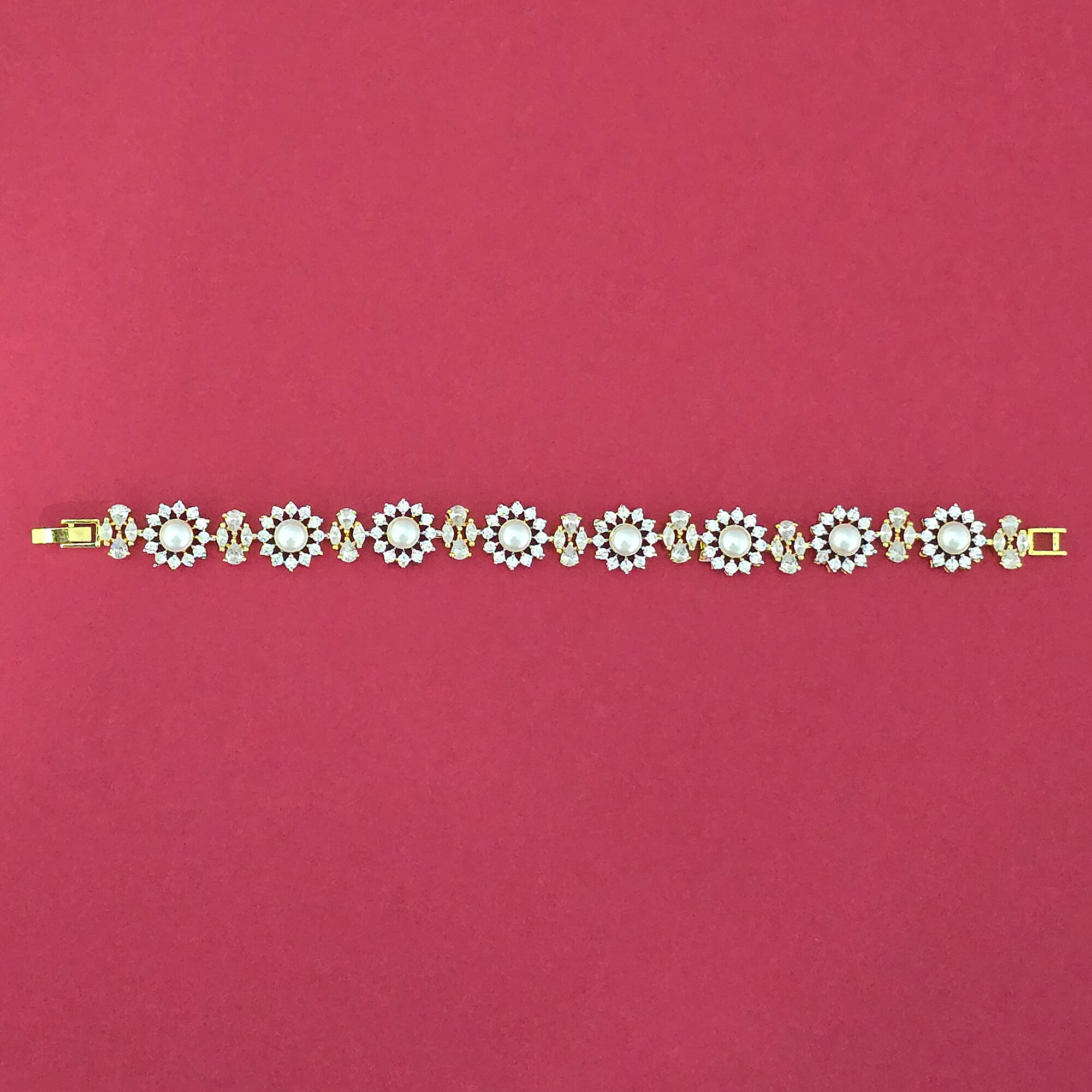 Kanhai Jewels offers an exclusive collection of finest quality crafted Fashion Jewellery in various colors. We make sure that our collection of American Diamond Moti Bracelet With Rhodium 2 Tone Plating are beautiful, elegent & will surely galvanize you, because our products are unique, comfortable, fashion forward & very popular for the rich look. Base Metal of our product is Alloy, i.e Mixing of Copper & Brass. We pack all the products using quality packaging material to ensure safe and secure transportation.