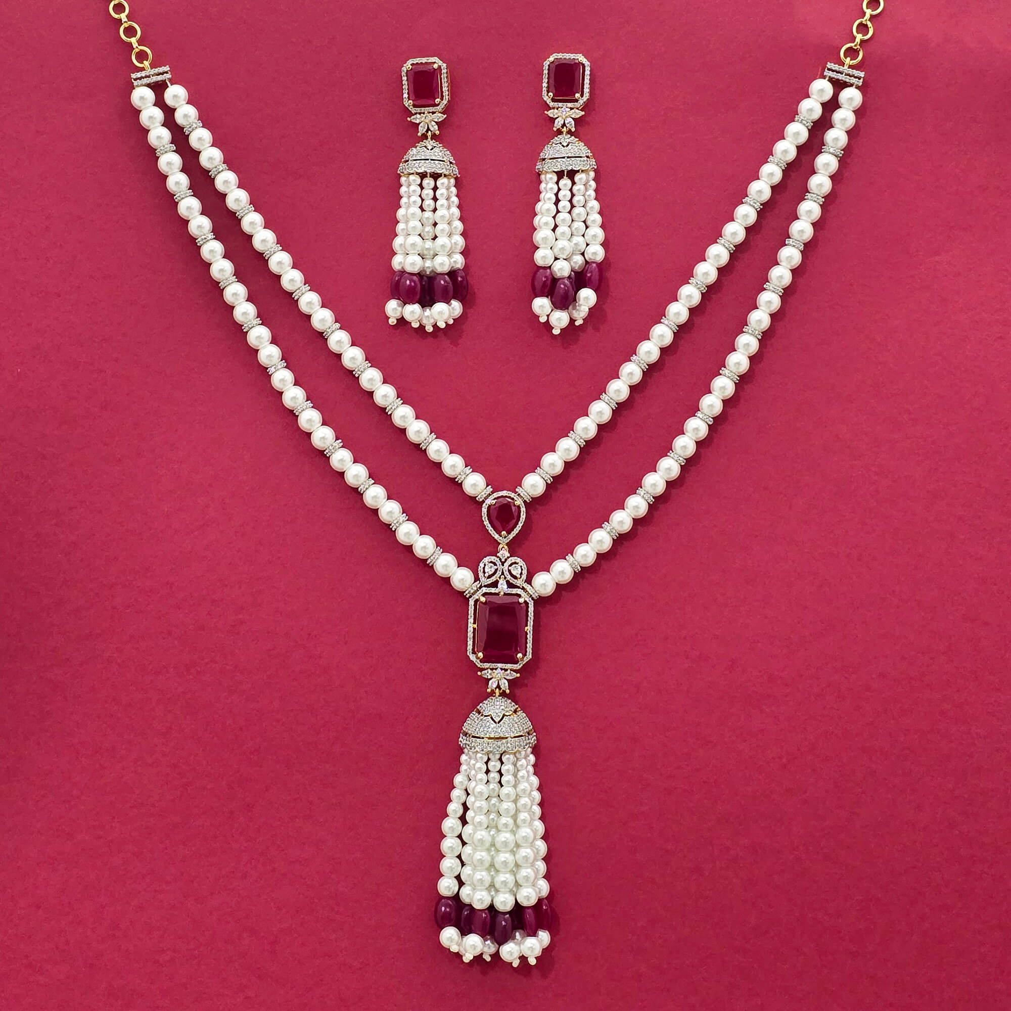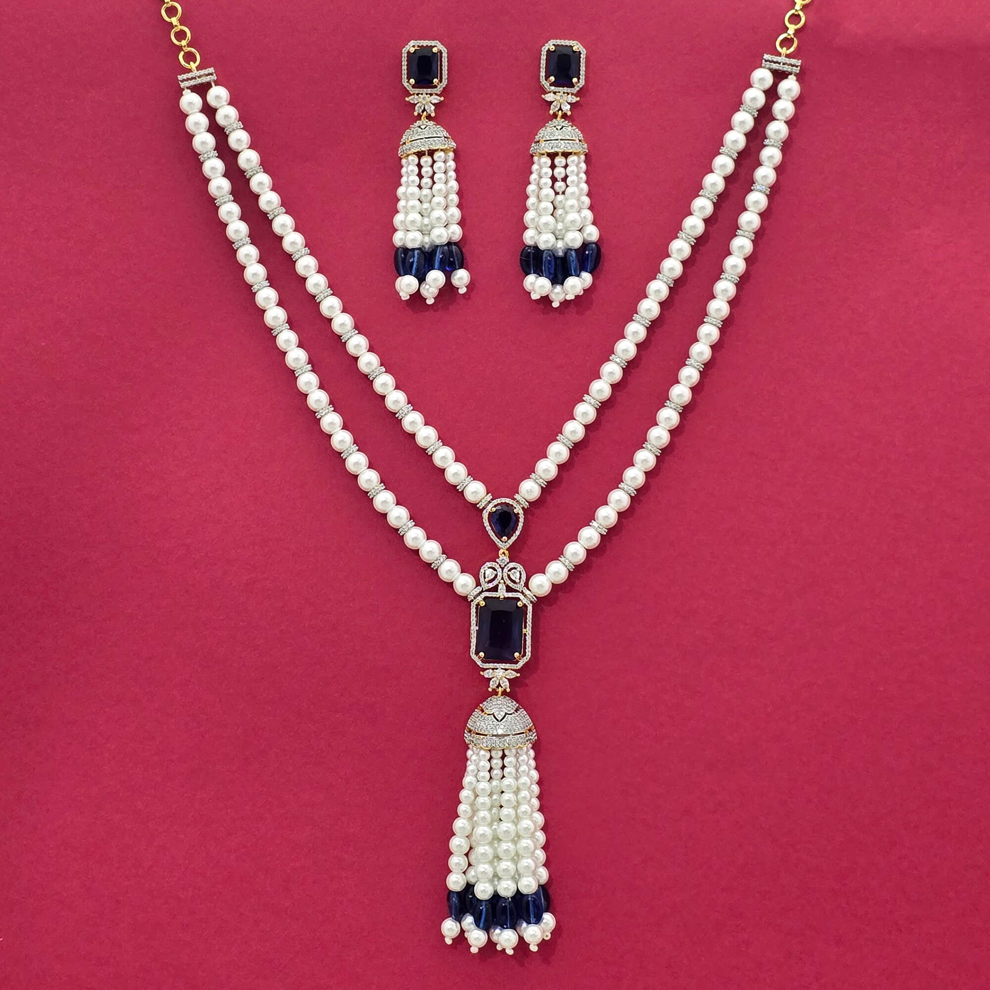 Kanhai Jewels offers an exclusive collection of finest quality crafted Fashion Jewellery in various colors. We make sure that our collection of American Diamond Moti Pendant Set With 2 Tone Plating are beautiful, elegent & will surely galvanize you, because our products are unique, comfortable, fashion forward & very popular for the rich look. Base Metal of our product is Alloy, i.e Mixing of Copper & Brass. We pack all the products using quality packaging material to ensure safe and secure transportation.