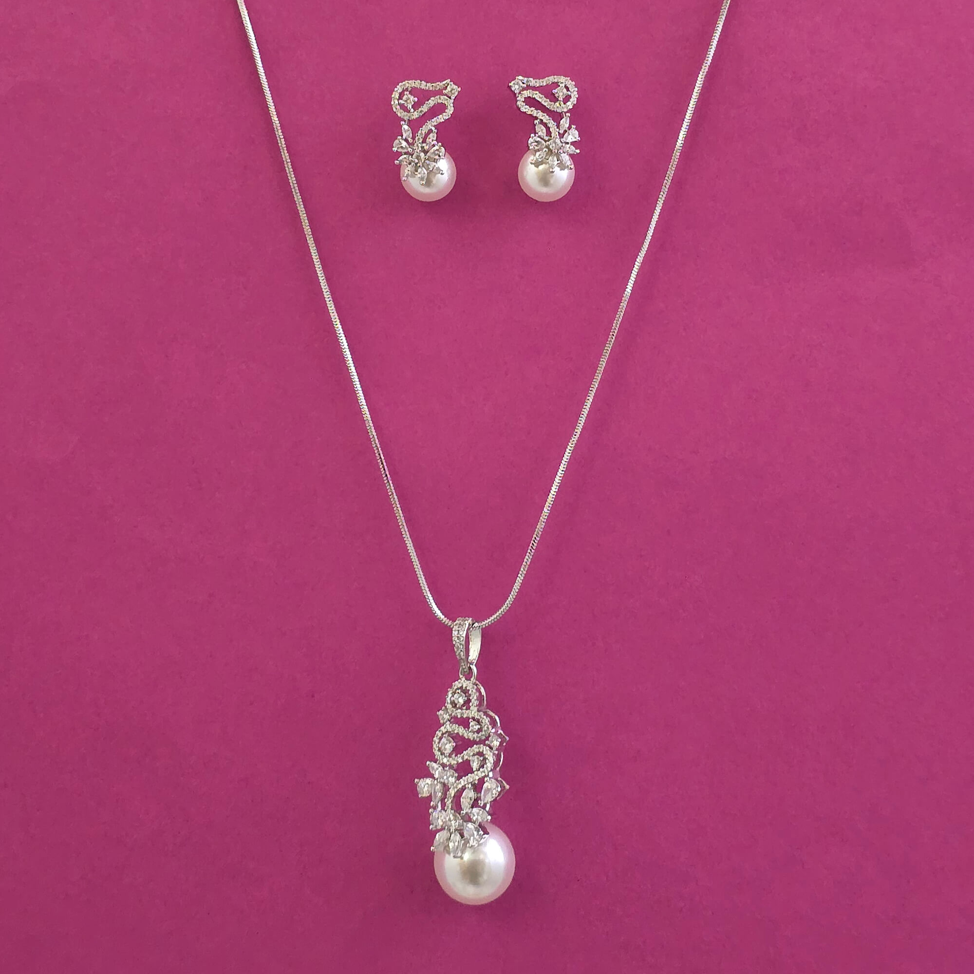 Kanhai Jewels offers an exclusive collection of finest quality crafted Fashion Jewellery in various colors. We make sure that our collection of American Diamond Moti Pendant Set With Rhodium Plating are beautiful, elegant & will surely galvanize you, because our products are unique, comfortable, fashion forward & very popular for the rich look. Base Metal of our product is Alloy, i.e mixing of Copper & Brass. We pack all the products using quality packaging material to ensure safe and secure transportation.