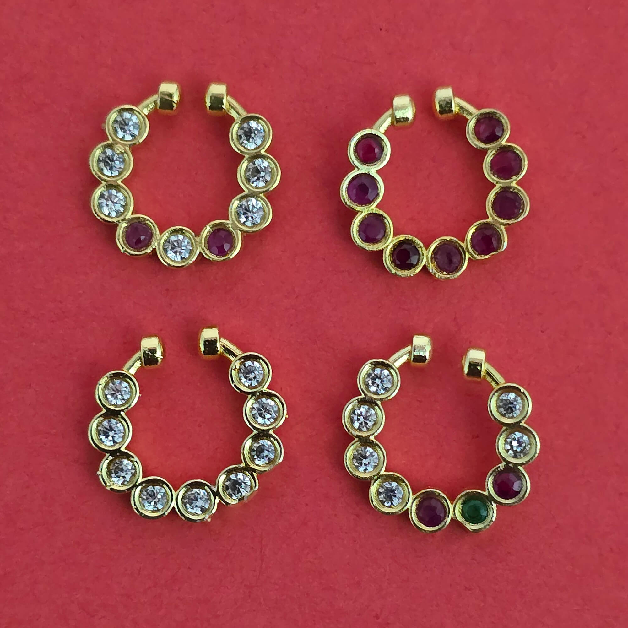 Home / American Diamond Nose Ring / american diamond pressing nose ring with gold plating