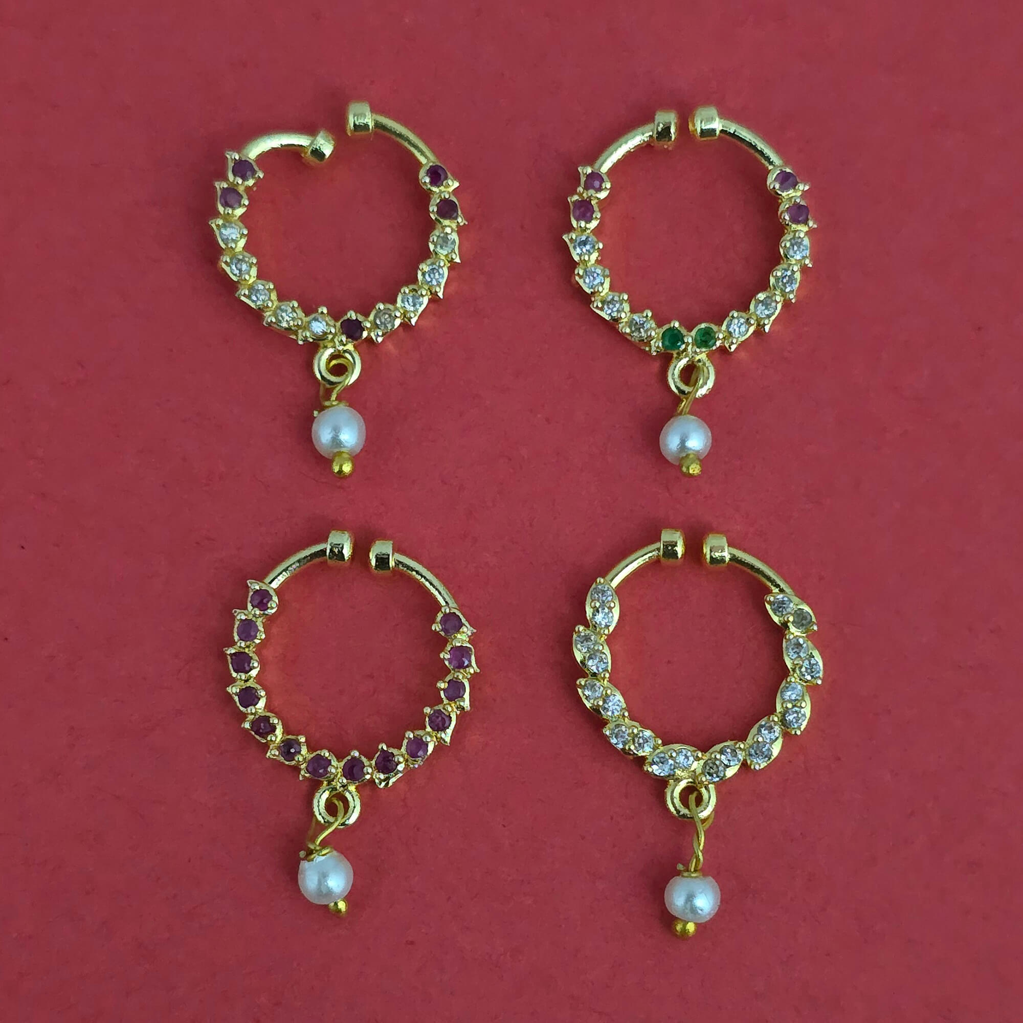 Home / American Diamond Nose Ring / american diamond pressing nose ring with gold plating