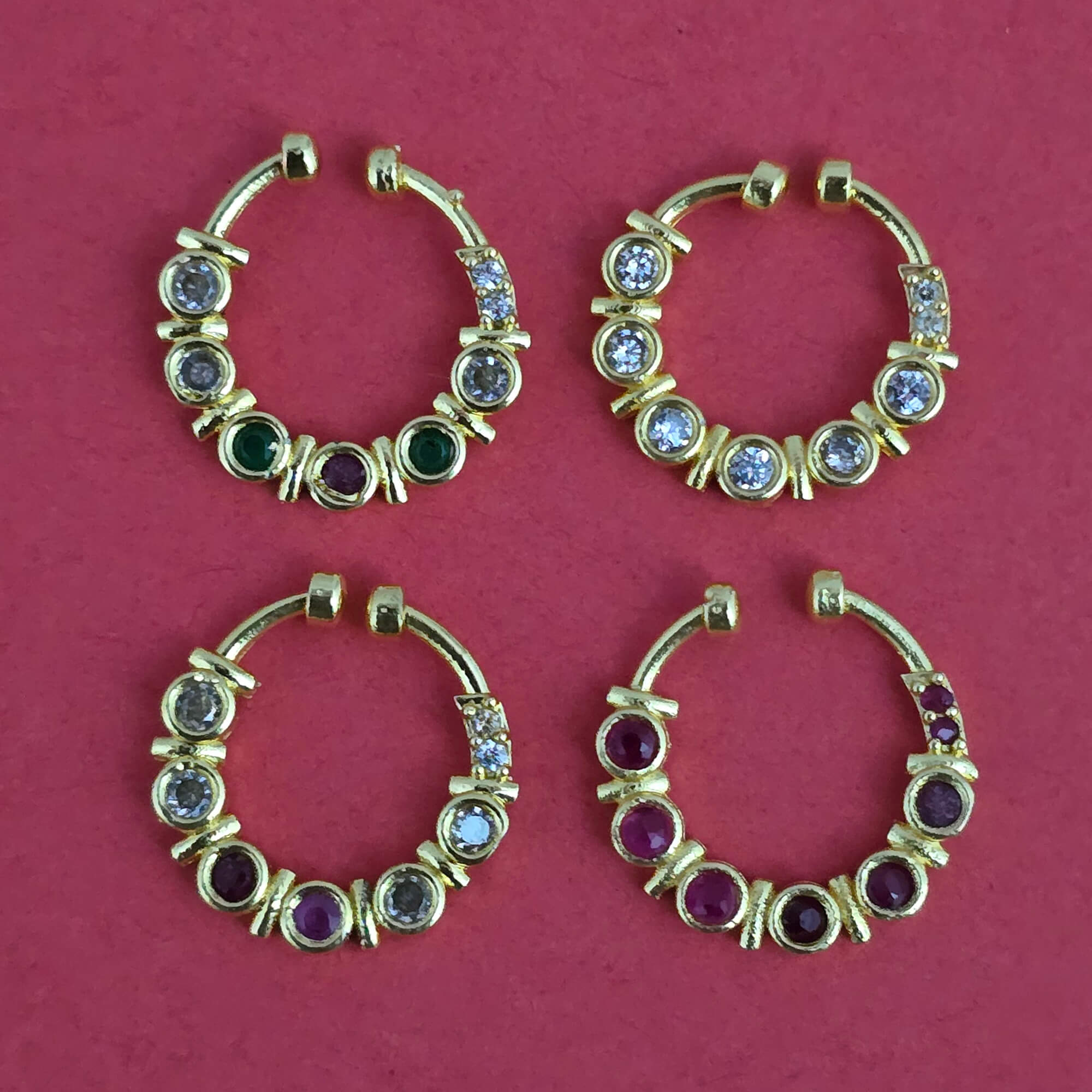 Home / American Diamond Nose Ring / american diamond pressing nose ring with gold plating