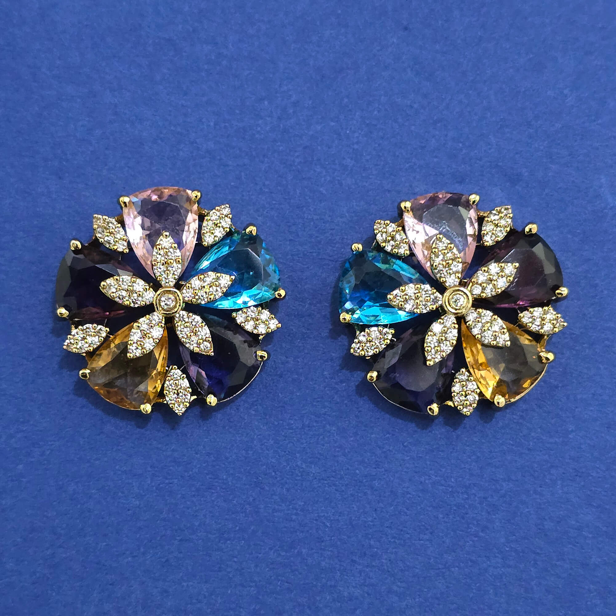 Home / American Diamond Earring / american diamond tops with mehndi plating