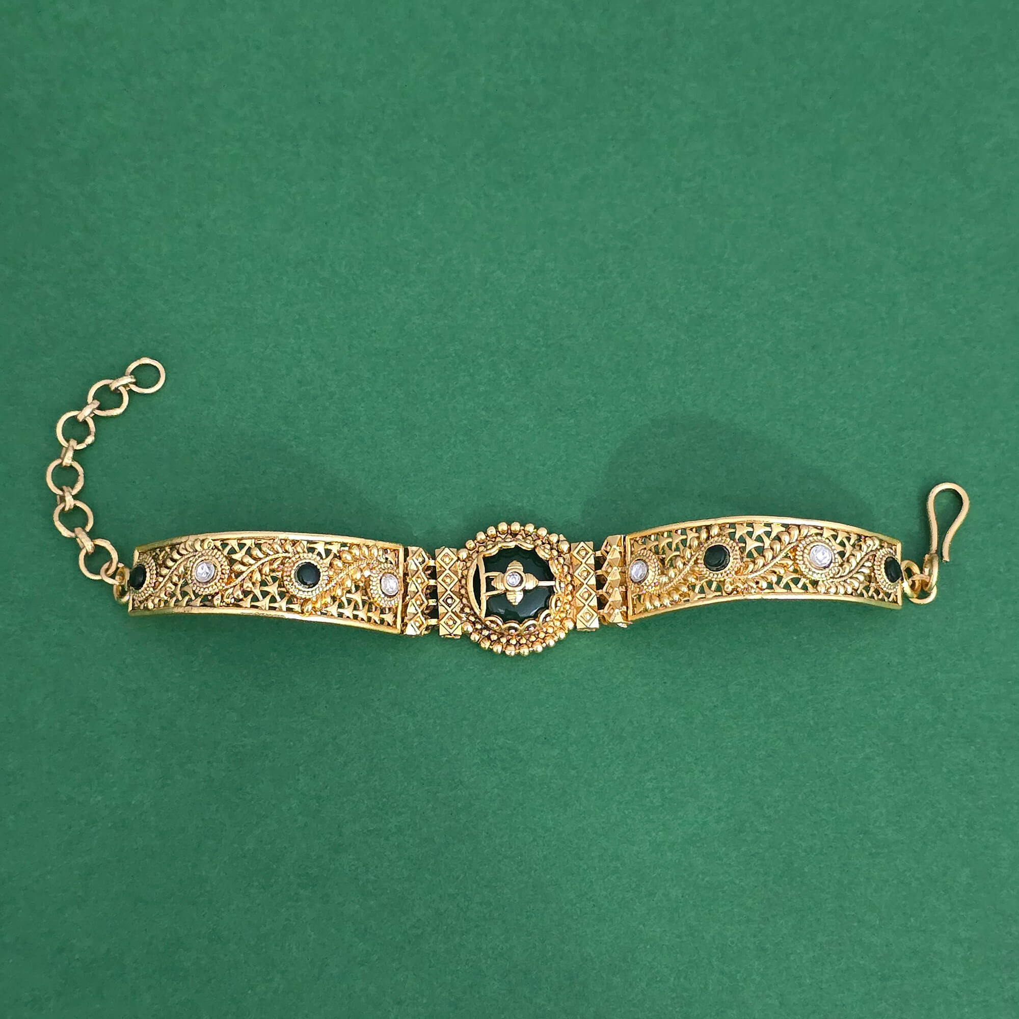 Kanhai Jewels offers an exclusive collection of finest quality crafted Fashion Jewellery in various colors. We make sure that our collection of Antique Adjustable Bracelet With Gold Plating are beautiful, elegent & will surely galvanize you, because our products are unique, comfortable, fashion forward & very popular for the rich look. Base Metal of our product is Alloy, i.e Mixing of Copper & Brass. We pack all the products using quality packaging material to ensure safe and secure transportation.