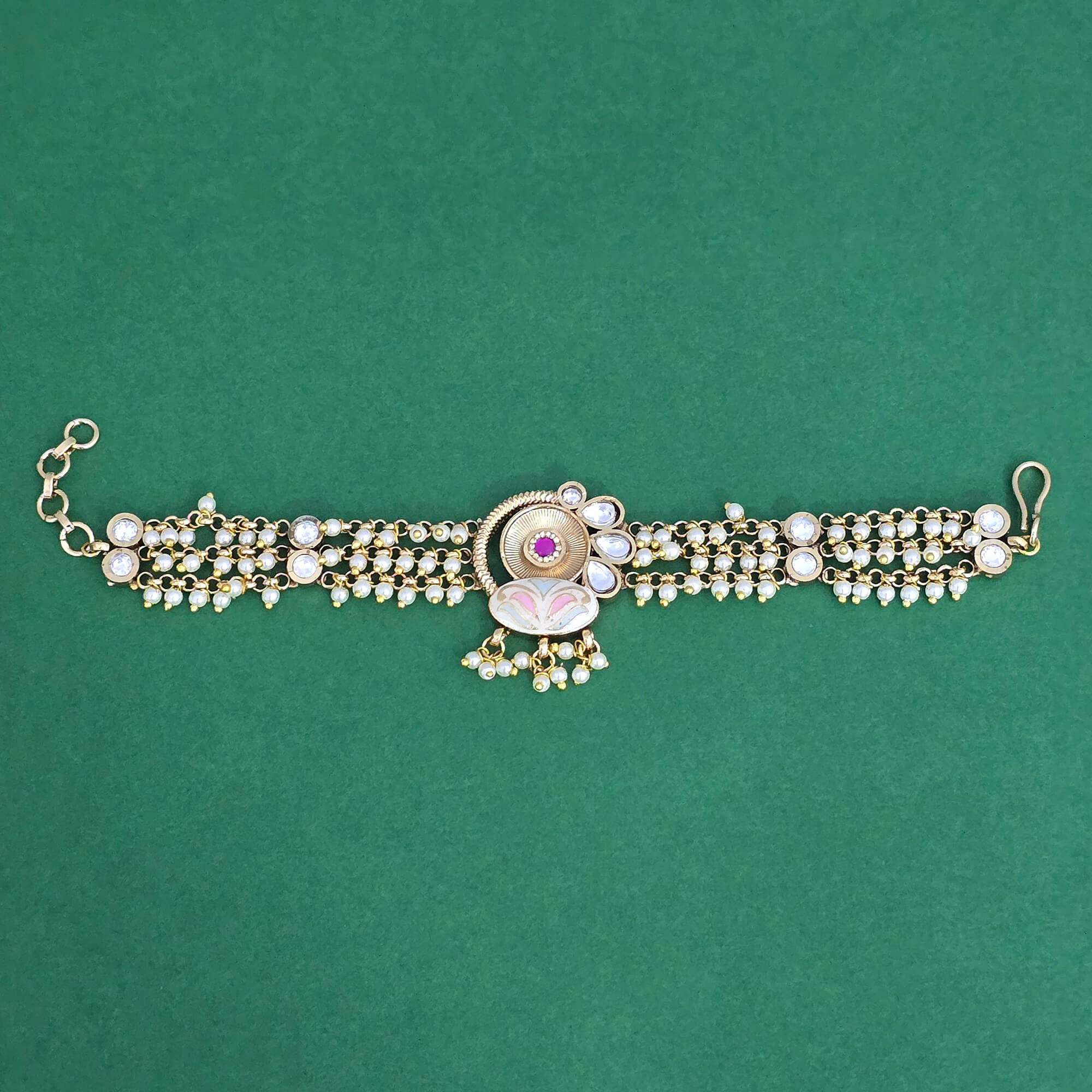 Kanhai Jewels offers an exclusive collection of finest quality crafted Fashion Jewellery in various colors. We make sure that our collection of Antique Adjustable Bracelet With Mehndi Plating are beautiful, elegent & will surely galvanize you, because our products are unique, comfortable, fashion forward & very popular for the rich look. Base Metal of our product is Alloy, i.e Mixing of Copper & Brass. We pack all the products using quality packaging material to ensure safe and secure transportation.