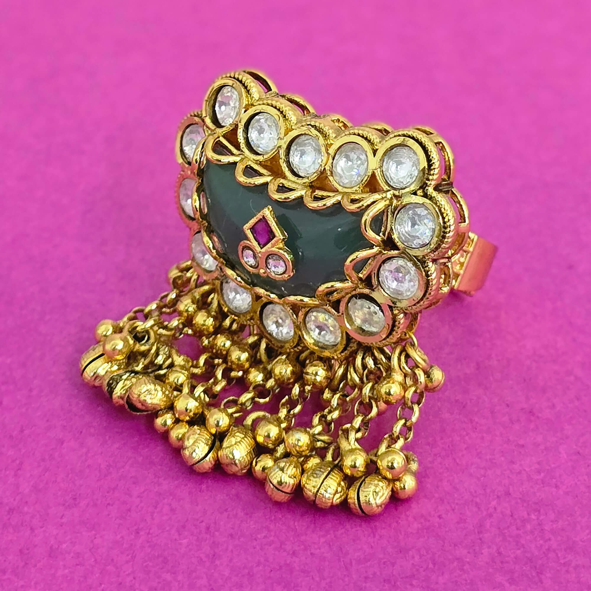 Kanhai Jewels offers an exclusive collection of finest quality crafted Fashion Jewellery in various colors. We make sure that our collection of Antique Adjustable Ring With Gold Plating are beautiful, elegent & will surely galvanize you, because our products are unique, comfortable, fashion forward & very popular for the rich look. Base Metal of our product is Alloy, i.e Mixing of Copper & Brass. We pack all the products using quality packaging material to ensure safe and secure transportation.