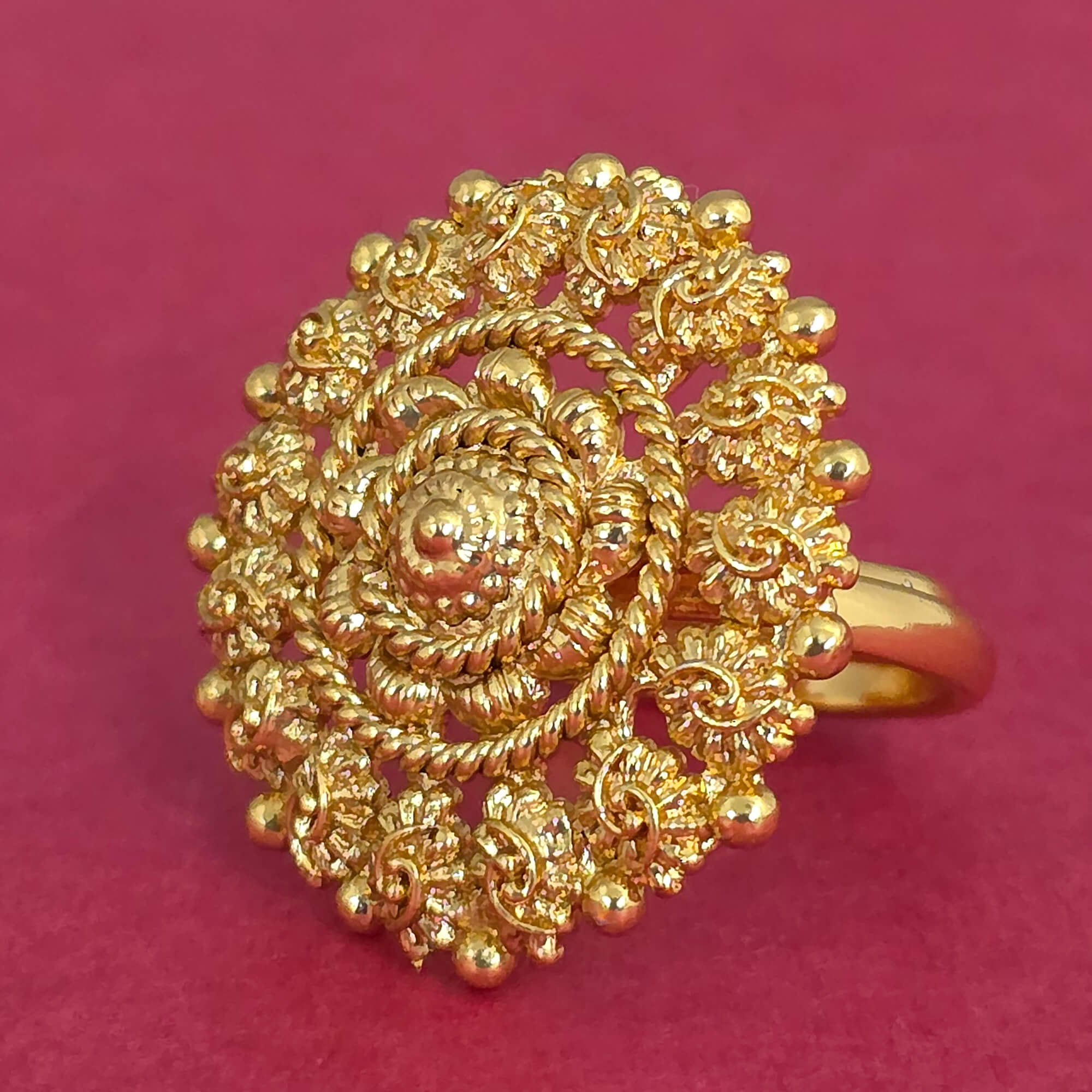 Kanhai Jewels offers an exclusive collection of finest quality crafted Fashion Jewellery in various colors. We make sure that our collection of Antique Adjustable Ring With Gold Plating are beautiful, elegent & will surely galvanize you, because our products are unique, comfortable, fashion forward & very popular for the rich look. Base Metal of our product is Alloy, i.e Mixing of Copper & Brass. We pack all the products using quality packaging material to ensure safe and secure transportation.
