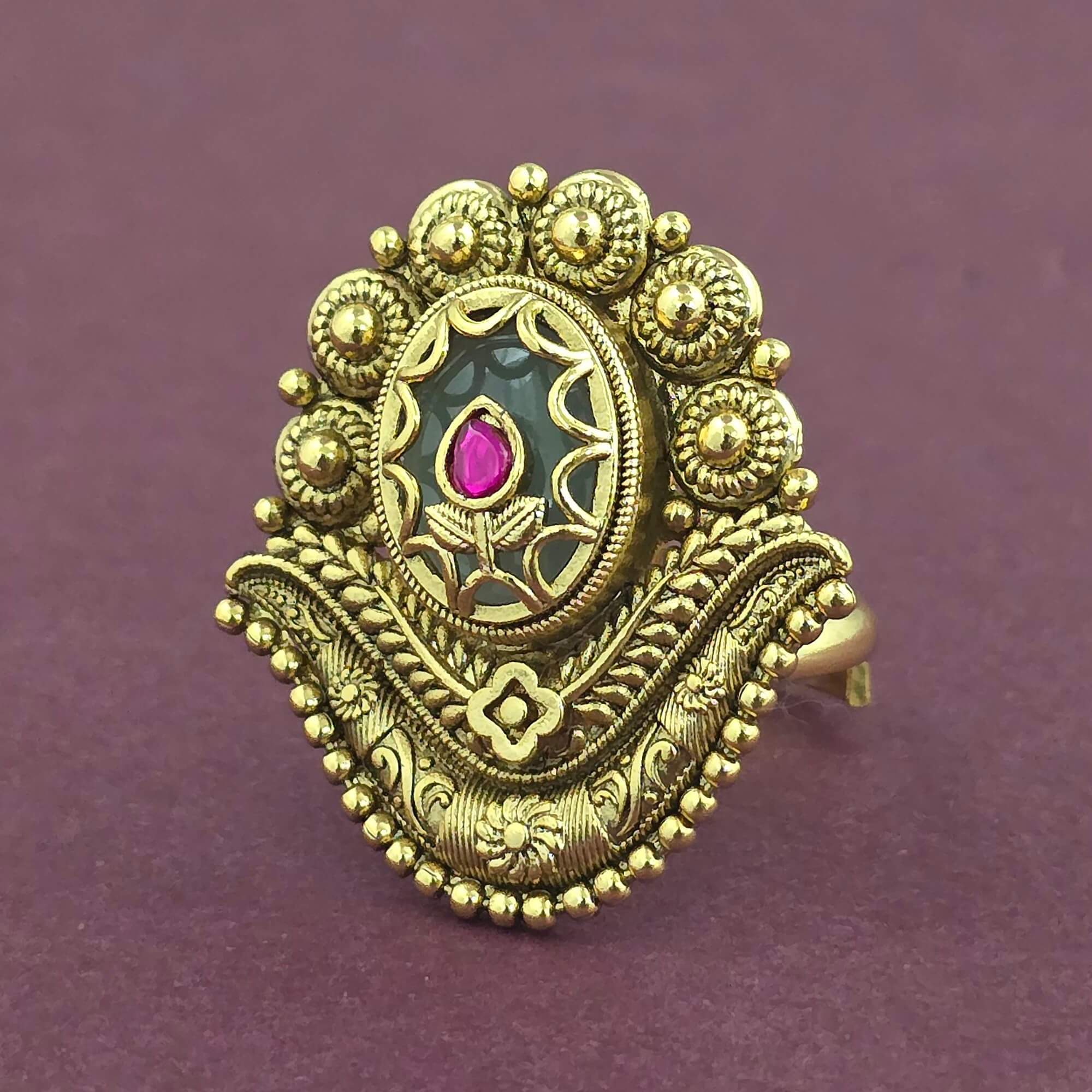 Kanhai Jewels offers an exclusive collection of finest quality crafted Fashion Jewellery in various colors. We make sure that our collection of Antique Adjustable Ring With Gold Plating are beautiful, elegent & will surely galvanize you, because our products are unique, comfortable, fashion forward & very popular for the rich look. Base Metal of our product is Alloy, i.e Mixing of Copper & Brass. We pack all the products using quality packaging material to ensure safe and secure transportation.