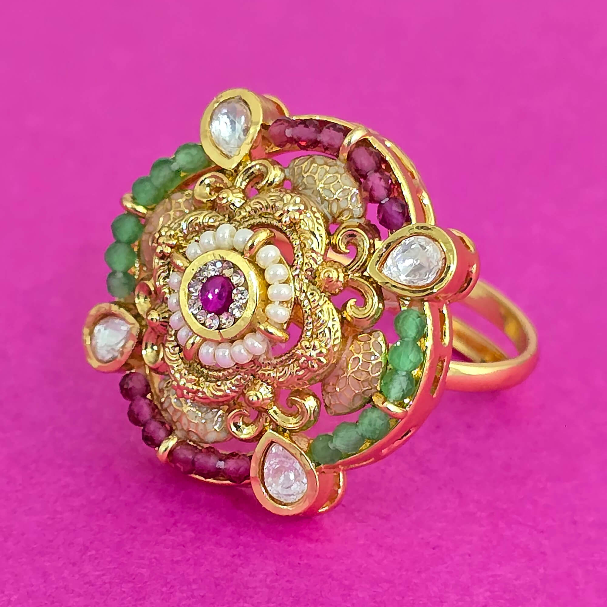 Kanhai Jewels offers an exclusive collection of finest quality crafted Fashion Jewellery in various colors. We make sure that our collection of Antique Adjustable Ring With Matte Gold Plating are beautiful, elegent & will surely galvanize you, because our products are unique, comfortable, fashion forward & very popular for the rich look. Base Metal of our product is Alloy, i.e Mixing of Copper & Brass. We pack all the products using quality packaging material to ensure safe and secure transportation.