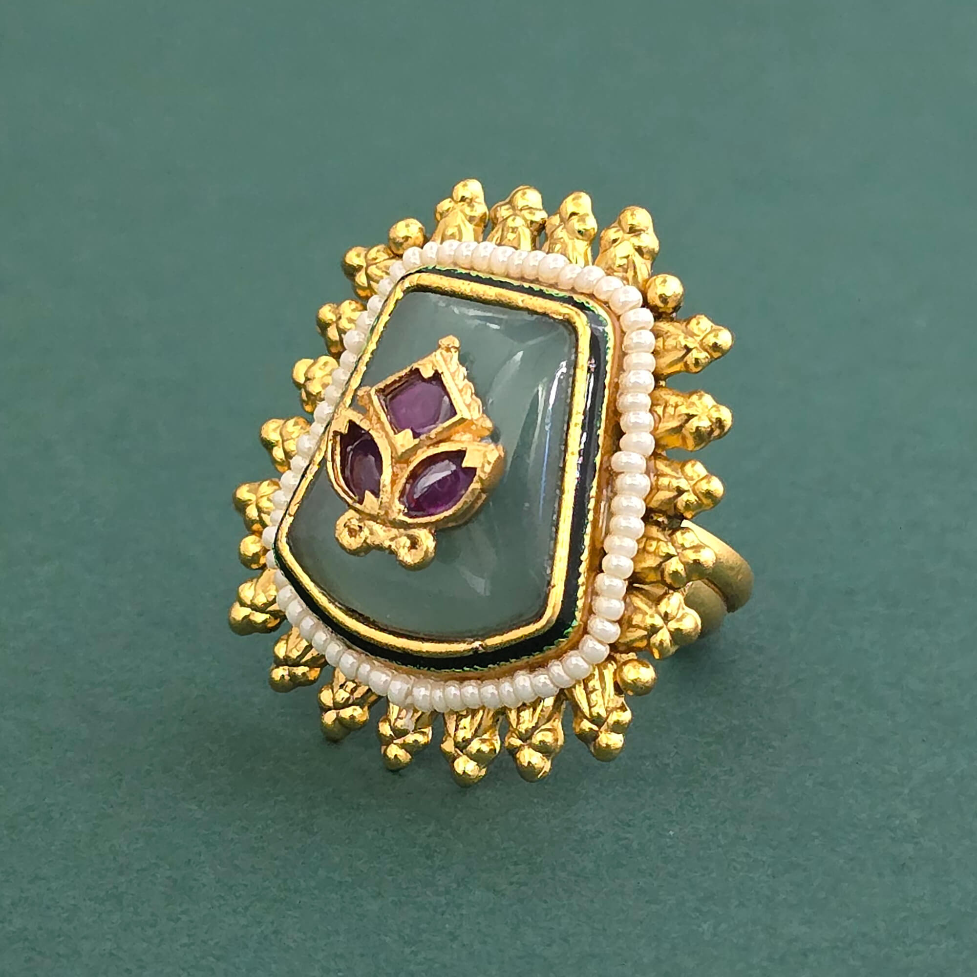 Kanhai Jewels offers an exclusive collection of finest quality crafted Fashion Jewellery in various colors. We make sure that our collection of Antique Adjustable Ring With Matte Gold Plating are beautiful, elegent & will surely galvanize you, because our products are unique, comfortable, fashion forward & very popular for the rich look. Base Metal of our product is Alloy, i.e Mixing of Copper & Brass. We pack all the products using quality packaging material to ensure safe and secure transportation.