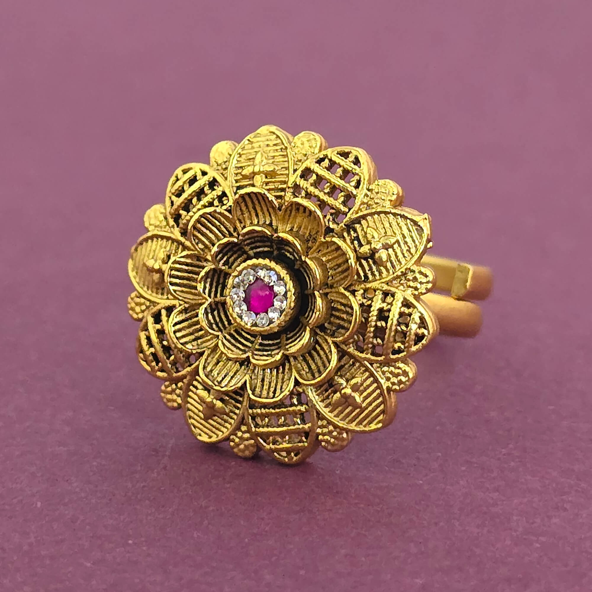 • Antique Adjustable Ring With Matte Gold Plating