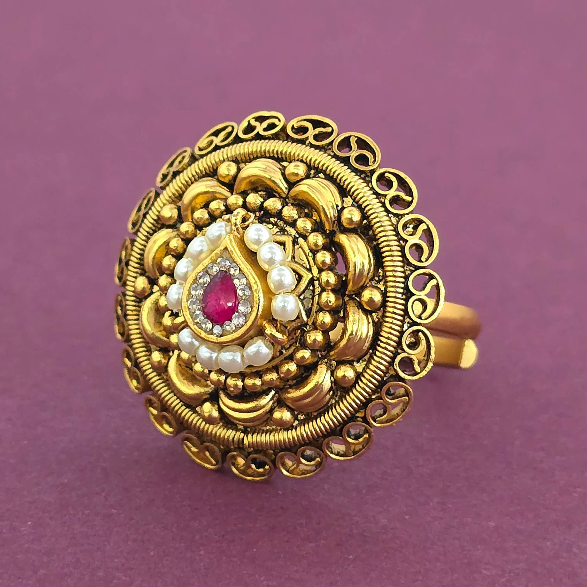 Kanhai Jewels offers an exclusive collection of finest quality crafted Fashion Jewellery in various colors. We make sure that our collection of Antique Adjustable Ring With Matte Gold Plating are beautiful, elegent & will surely galvanize you, because our products are unique, comfortable, fashion forward & very popular for the rich look. Base Metal of our product is Alloy, i.e Mixing of Copper & Brass. We pack all the products using quality packaging material to ensure safe and secure transportation.