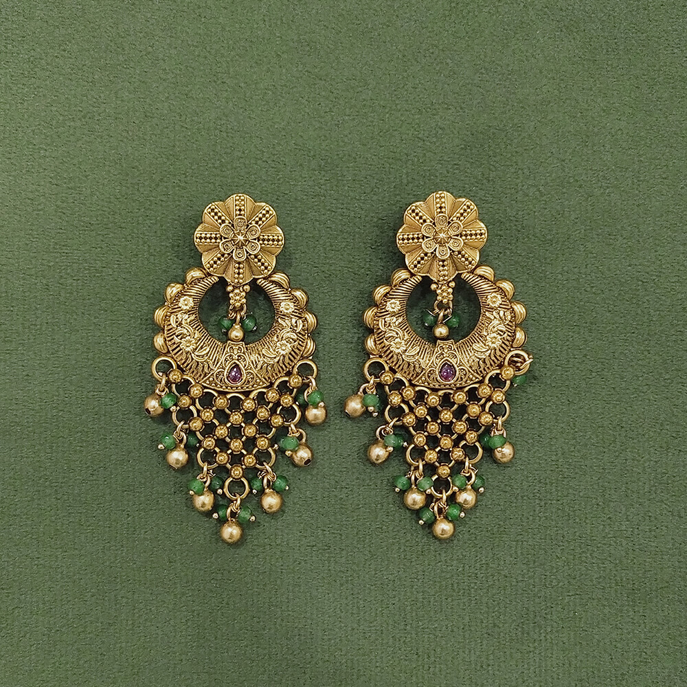 Kanhai Jewels offers an exclusive collection of finest quality crafted Fashion Jewellery in various colors. We make sure that our collection of Antique Chand Earring With Matte Gold Plating are beautiful, elegent & will surely galvanize you, because our products are unique, comfortable, fashion forward & very popular for the rich look. Base Metal of our product is Alloy, i.e Mixing of Copper & Brass. We pack all the products using quality packaging material to ensure safe and secure transportation.