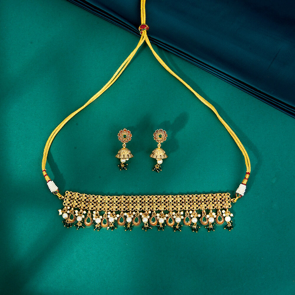 Kanhai Jewels offers an exclusive collection of finest quality crafted Fashion Jewellery in various colors. We make sure that our collection of Antique Choker Necklace With Gold Plating are beautiful, elegent & will surely galvanize you, because our products are unique, comfortable, fashion forward & very popular for the rich look. Base Metal of our product is Alloy, i.e Mixing of Copper & Brass. We pack all the products using quality packaging material to ensure safe and secure transportation.
