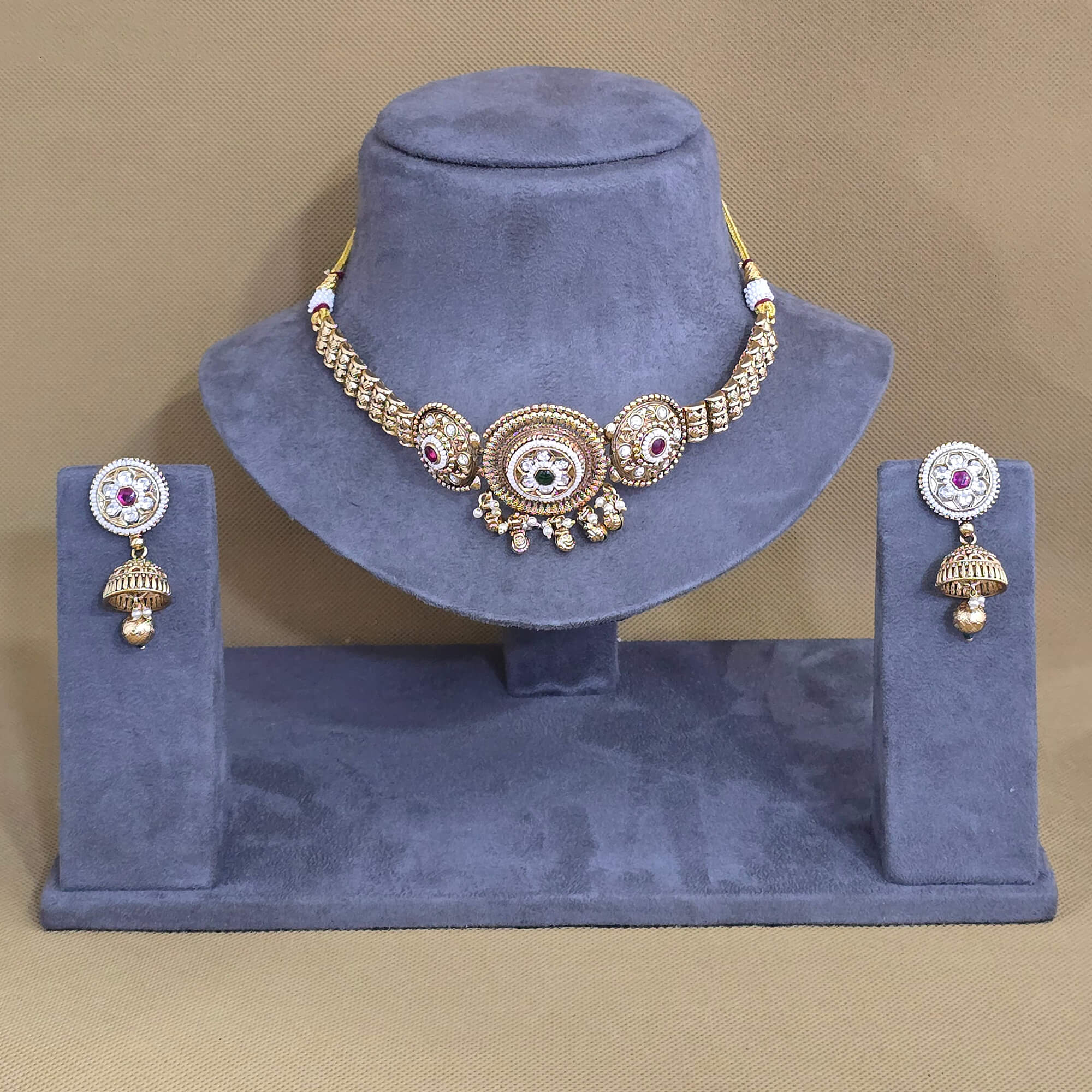 Kanhai Jewels offers an exclusive collection of finest quality crafted Fashion Jewellery in various colors. We make sure that our collection of Antique Choker Necklace With Matte Gold Plating are beautiful, elegent & will surely galvanize you, because our products are unique, comfortable, fashion forward & very popular for the rich look. Base Metal of our product is Alloy, i.e Mixing of Copper & Brass. We pack all the products using quality packaging material to ensure safe and secure transportation.