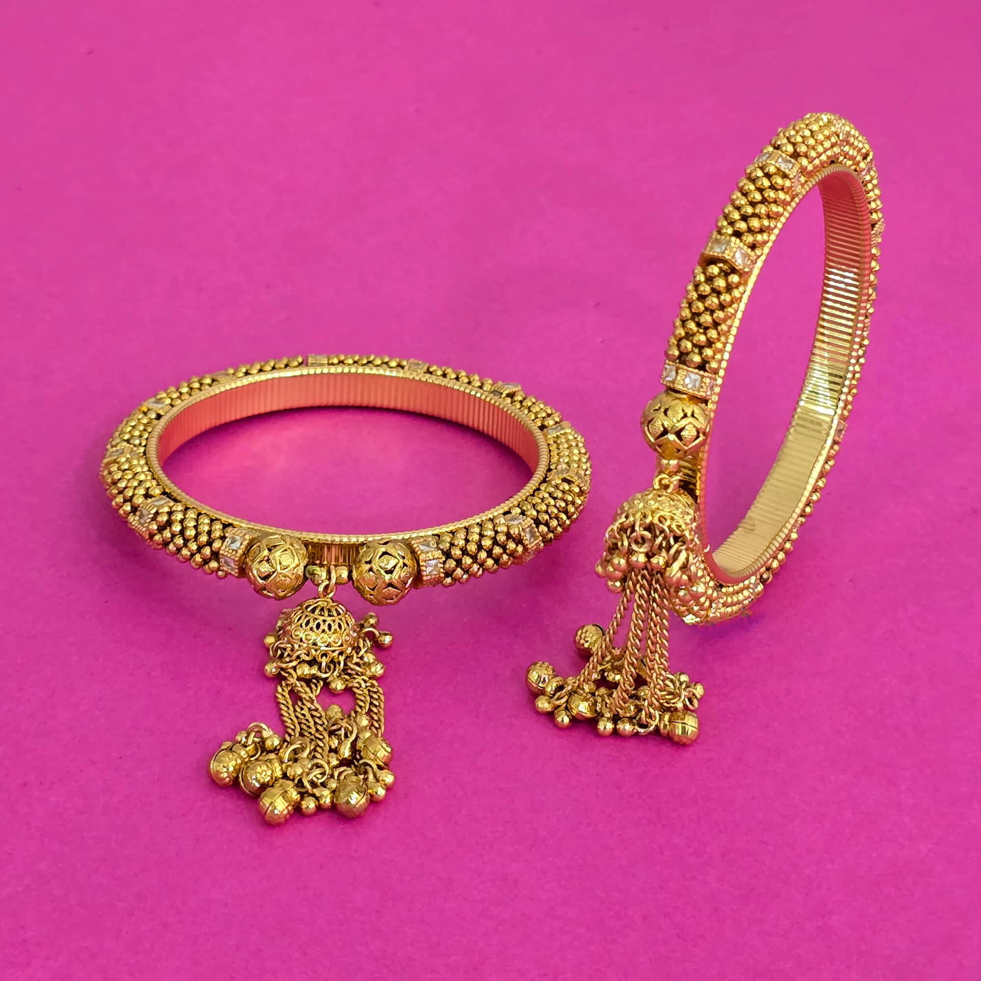 Kanhai Jewels offers an exclusive collection of finest quality crafted Fashion Jewellery in various colors. We make sure that our collection of Antique Classic Bangles With Matte Gold Plating are beautiful, elegent & will surely galvanize you, because our products are unique, comfortable, fashion forward & very popular for the rich look. Base Metal of our product is Alloy, i.e Mixing of Copper & Brass. We pack all the products using quality packaging material to ensure safe and secure transportation.