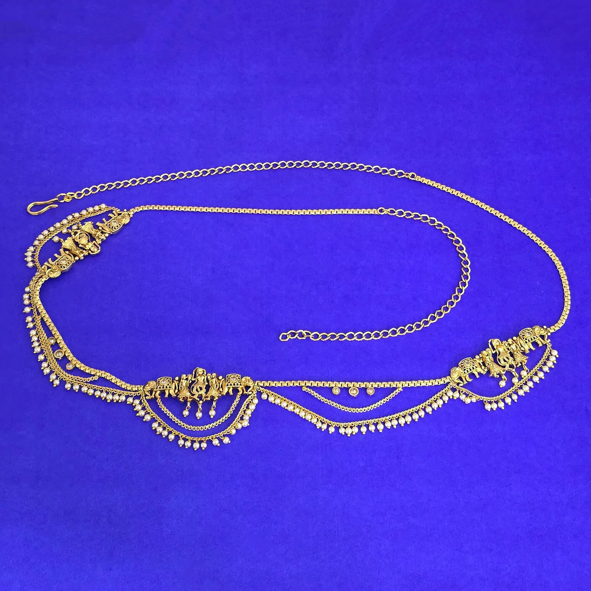 Kanhai Jewels offers an exclusive collection of finest quality crafted Fashion Jewellery in various colors. We make sure that our collection of Antique Classic Belt With Gold Plating are beautiful, elegent & will surely galvanize you, because our products are unique, comfortable, fashion forward & very popular for the rich look. Base Metal of our product is Alloy, i.e Mixing of Copper & Brass. We pack all the products using quality packaging material to ensure safe and secure transportation.