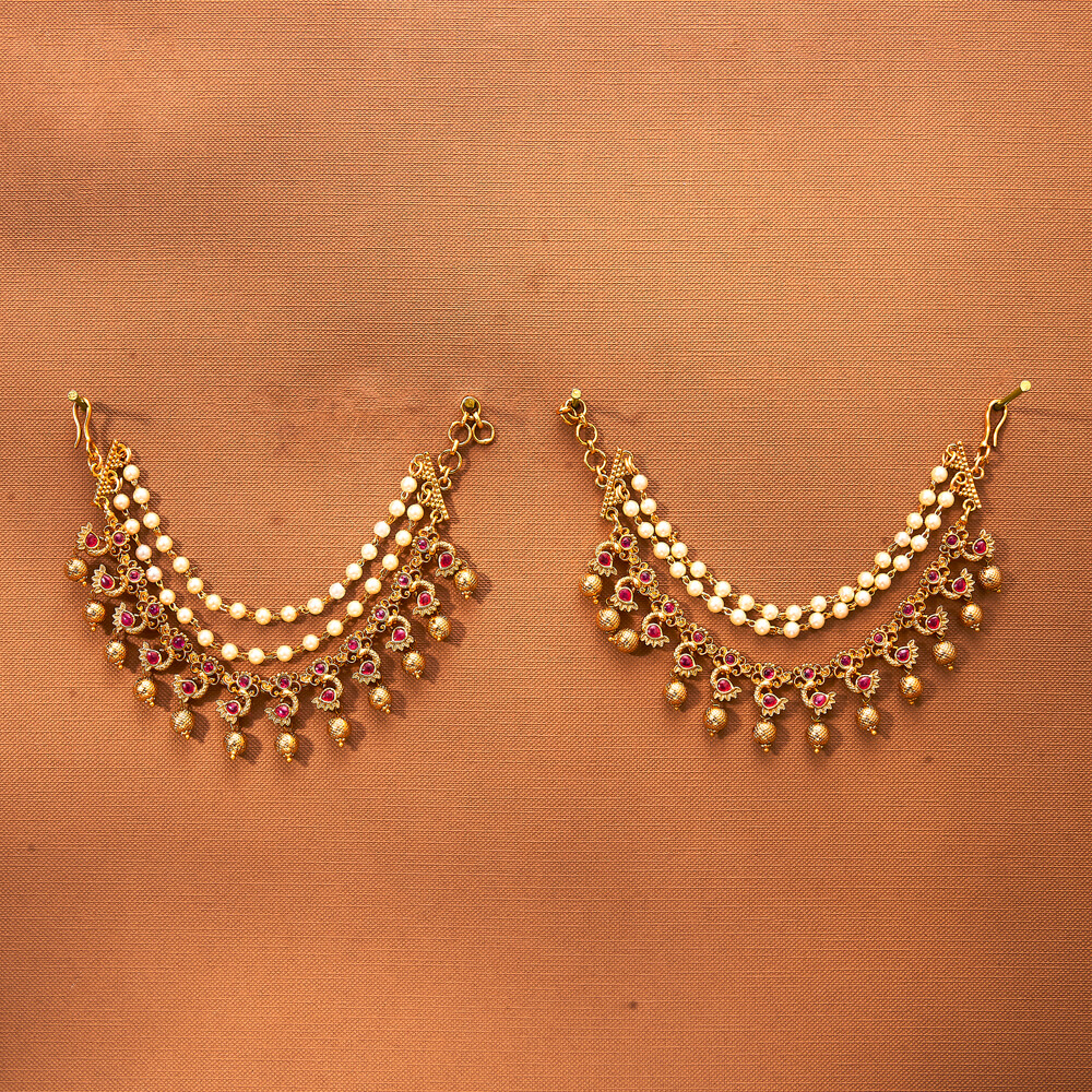 Kanhai Jewels offers an exclusive collection of finest quality crafted Fashion Jewellery in various colors. We make sure that our collection of Antique Classic Ear Chain With Matte Gold Plating are beautiful, elegent & will surely galvanize you, because our products are unique, comfortable, fashion forward & very popular for the rich look. Base Metal of our product is Alloy, i.e Mixing of Copper & Brass. We pack all the products using quality packaging material to ensure safe and secure transportation.