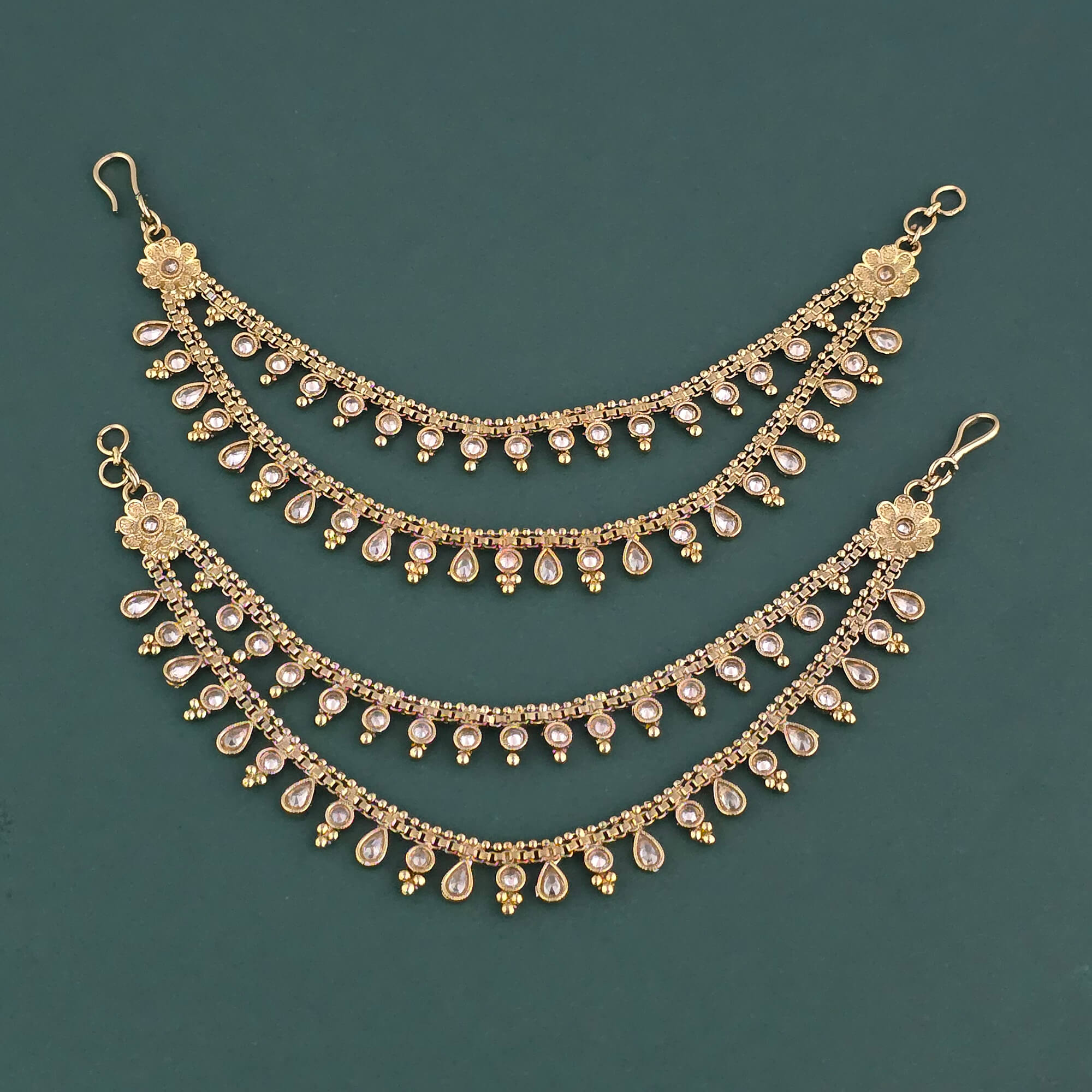 Kanhai Jewels offers an exclusive collection of finest quality crafted Fashion Jewellery in various colors. We make sure that our collection of Antique Classic Ear Chain With Mehndi Plating are beautiful, elegent & will surely galvanize you, because our products are unique, comfortable, fashion forward & very popular for the rich look. Base Metal of our product is Alloy, i.e Mixing of Copper & Brass. We pack all the products using quality packaging material to ensure safe and secure transportation.