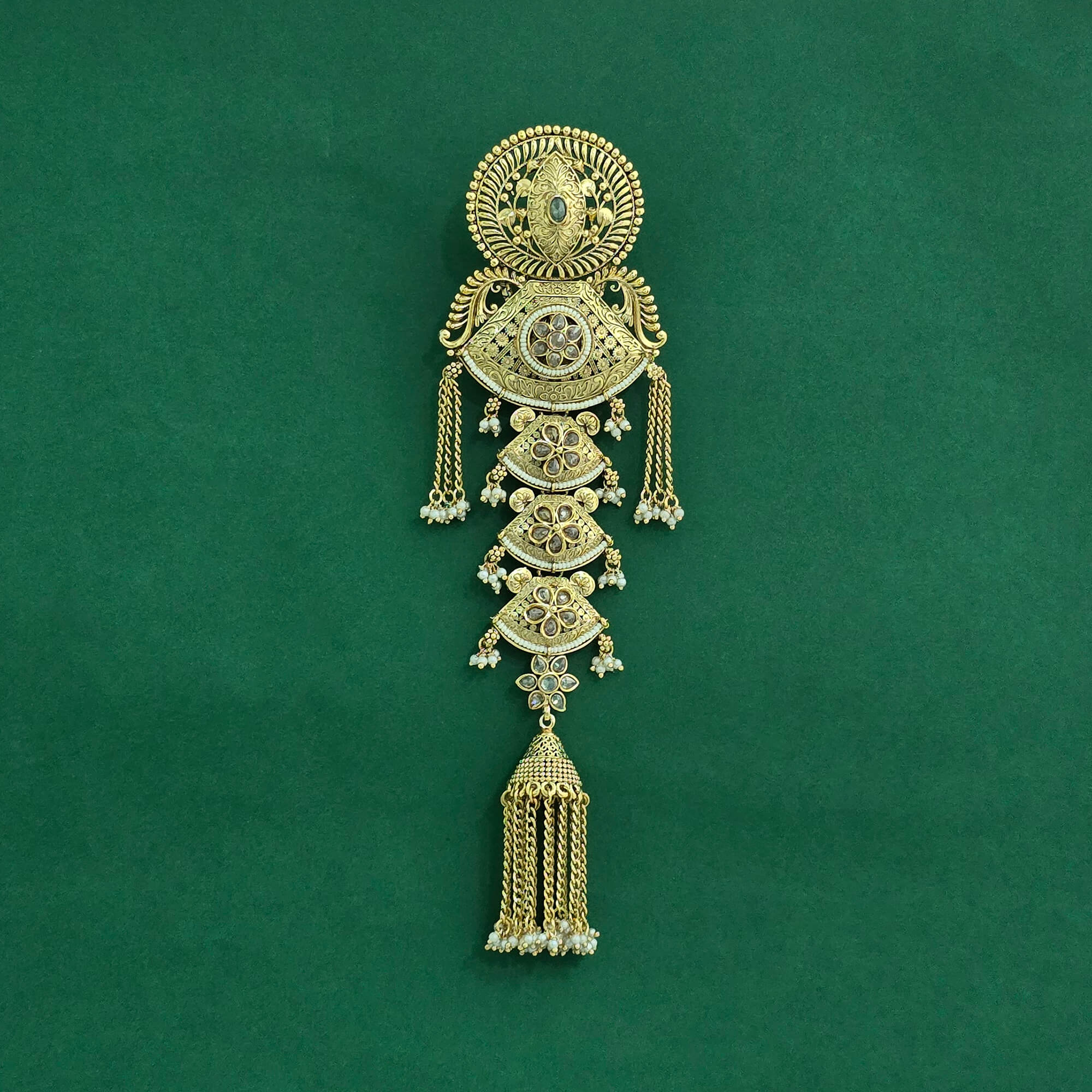 Kanhai Jewels offers an exclusive collection of finest quality crafted Fashion Jewellery in various colors. We make sure that our collection of Antique Classic Hair Brooch With Gold Plating are beautiful, elegent & will surely galvanize you, because our products are unique, comfortable, fashion forward & very popular for the rich look. Base Metal of our product is Alloy, i.e Mixing of Copper & Brass. We pack all the products using quality packaging material to ensure safe and secure transportation.