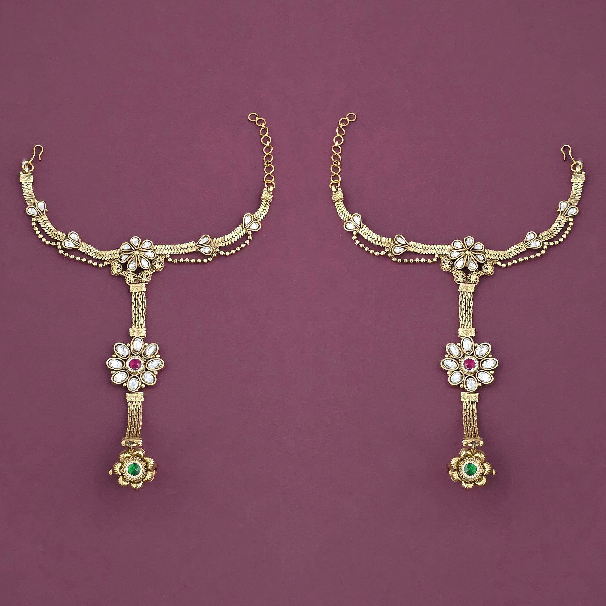Kanhai Jewels offers an exclusive collection of finest quality crafted Fashion Jewellery in various colors. We make sure that our collection of Antique Hath Pan with Gold Plating are beautiful, elegant & will surely galvanize you, because our products are unique, comfortable, fashion forward & very popular for the rich look. Base Metal of our product is Alloy, i.e mixing of Copper & Brass. We pack all the products using quality packaging material to ensure safe and secure transportation.
