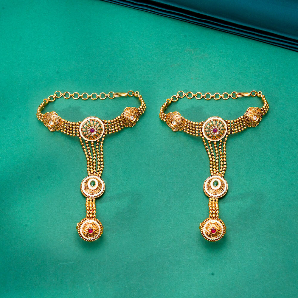 Kanhai Jewels offers an exclusive collection of finest quality crafted Fashion Jewellery in various colors. We make sure that our collection of Antique Classic Hath Pan With Matte Gold Plating are beautiful, elegent & will surely galvanize you, because our products are unique, comfortable, fashion forward & very popular for the rich look. Base Metal of our product is Alloy, i.e Mixing of Copper & Brass. We pack all the products using quality packaging material to ensure safe and secure transportation.
