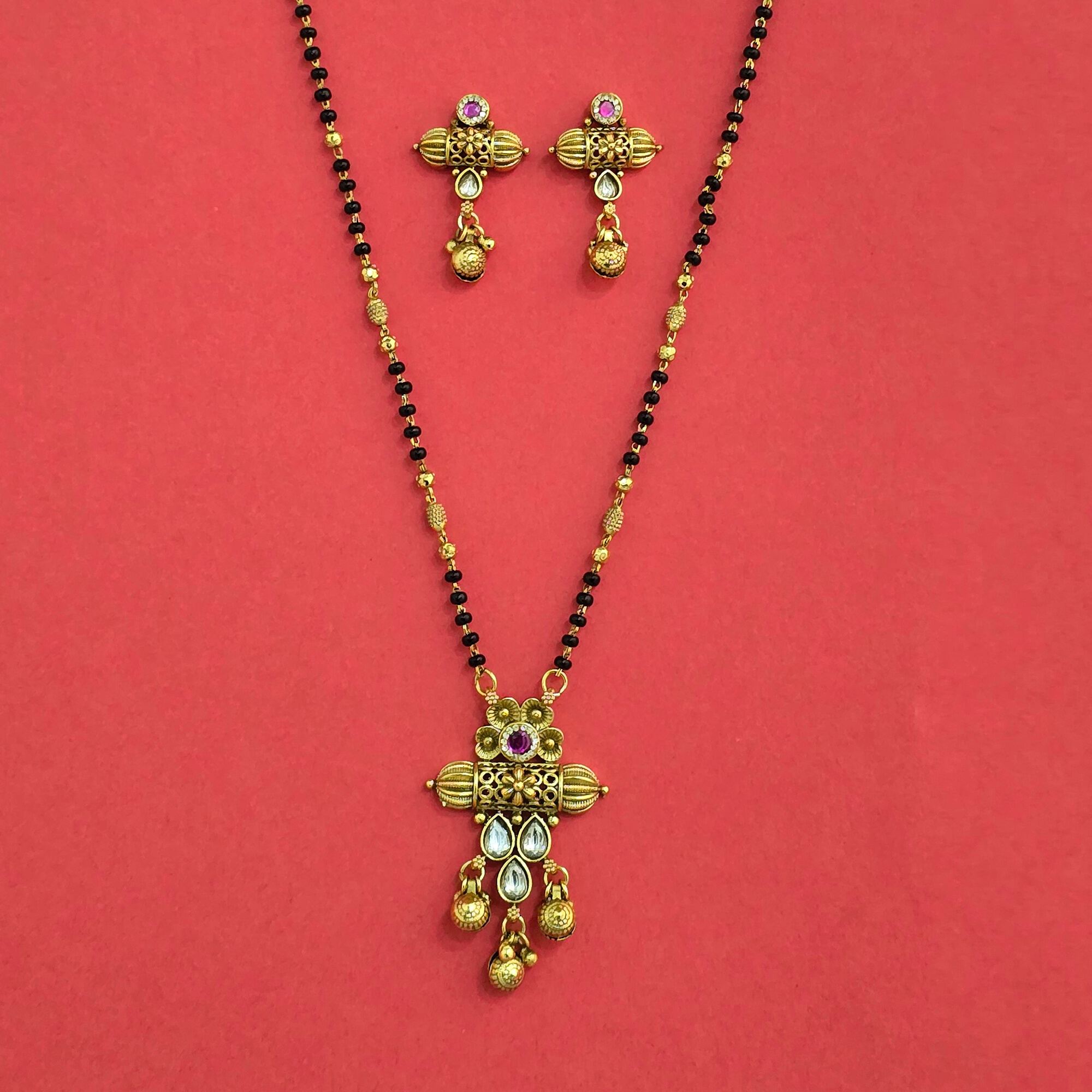 Kanhai Jewels offers an exclusive collection of finest quality crafted Fashion Jewellery in various colors. We make sure that our collection of Antique Classic Mangalsutra With Matte Gold Plating are beautiful, elegent & will surely galvanize you, because our products are unique, comfortable, fashion forward & very popular for the rich look. Base Metal of our product is Alloy, i.e Mixing of Copper & Brass. We pack all the products using quality packaging material to ensure safe and secure transportation.