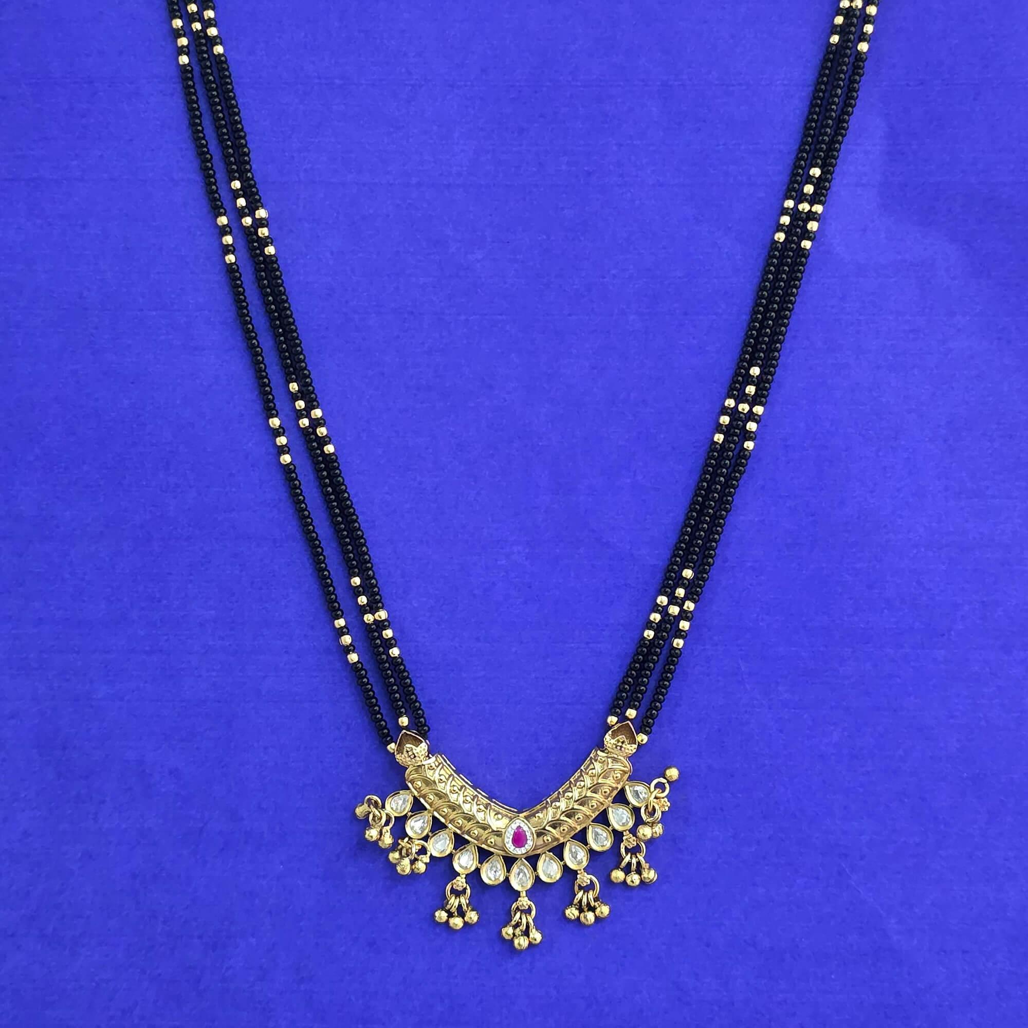 Kanhai Jewels offers an exclusive collection of finest quality crafted Fashion Jewellery in various colors. We make sure that our collection of Antique Classic Mangalsutra With Matte Gold Plating are beautiful, elegent & will surely galvanize you, because our products are unique, comfortable, fashion forward & very popular for the rich look. Base Metal of our product is Alloy, i.e Mixing of Copper & Brass. We pack all the products using quality packaging material to ensure safe and secure transportation.