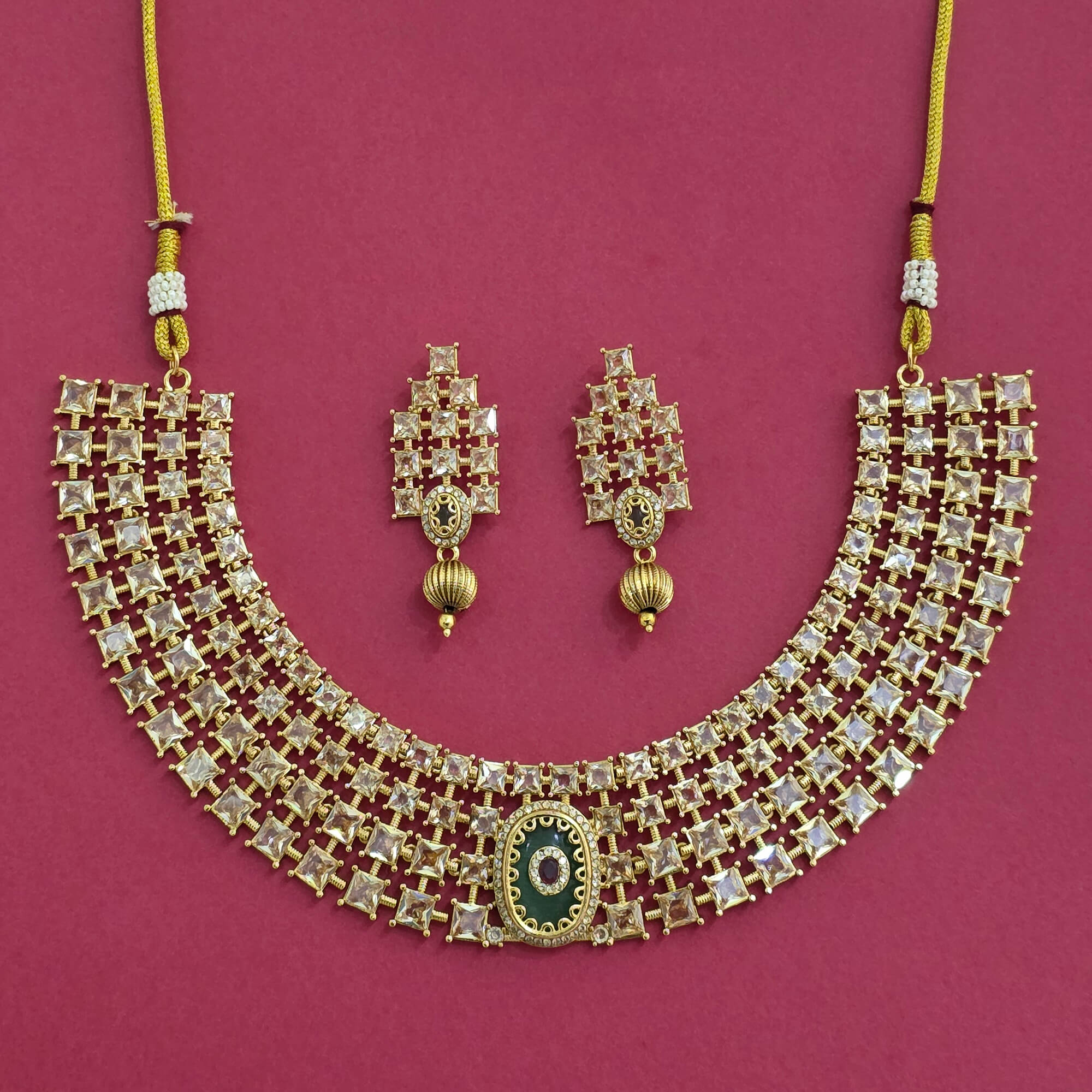 Kanhai Jewels offers an exclusive collection of finest quality crafted Fashion Jewellery in various colors. We make sure that our collection of Antique Classic Necklace Set With Gold Plating are beautiful, elegent & will surely galvanize you, because our products are unique, comfortable, fashion forward & very popular for the rich look. Base Metal of our product is Alloy, i.e Mixing of Copper & Brass. We pack all the products using quality packaging material to ensure safe and secure transportation.