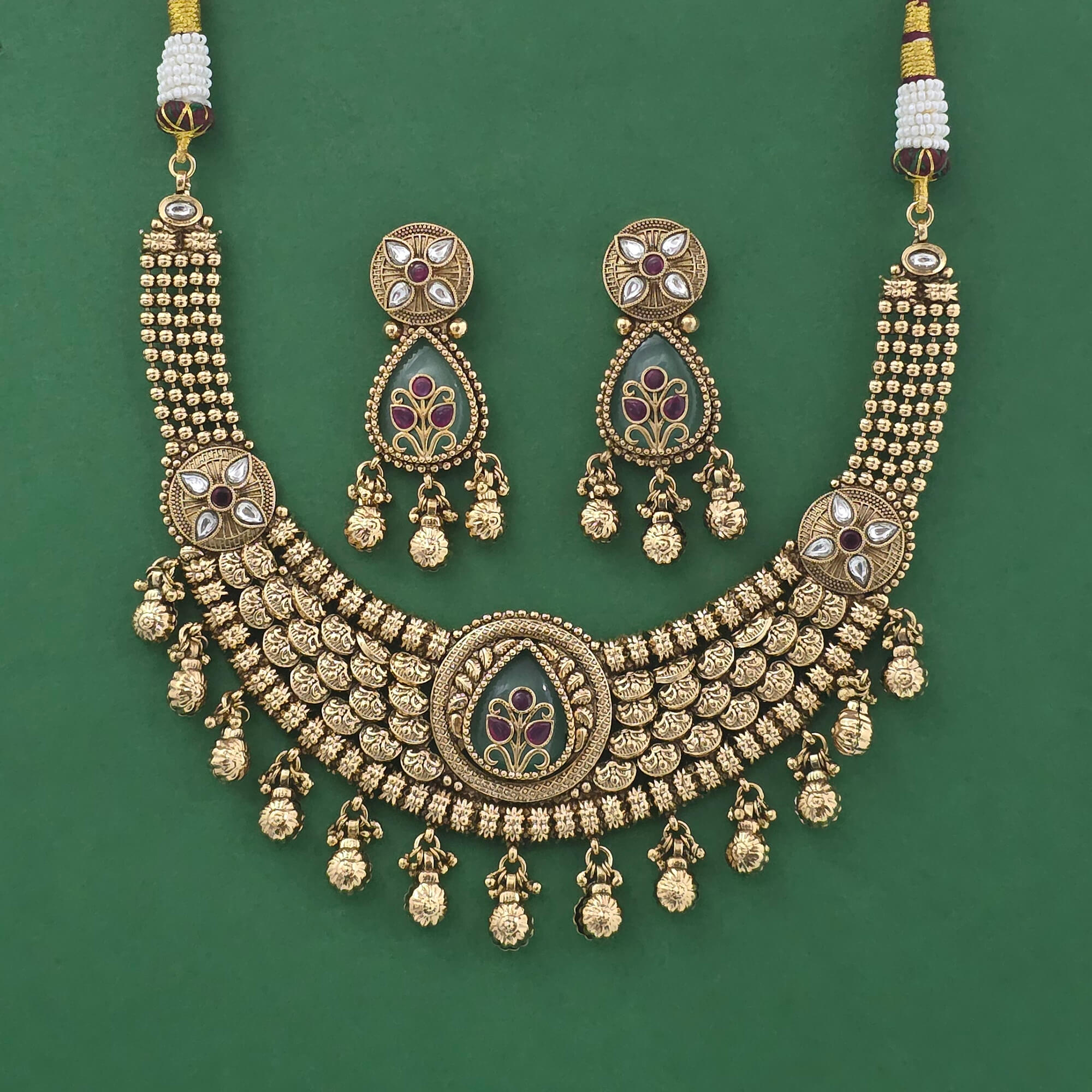 Kanhai Jewels offers an exclusive collection of finest quality crafted Fashion Jewellery in various colors. We make sure that our collection of Antique Classic Necklace Set With Gold Plating are beautiful, elegent & will surely galvanize you, because our products are unique, comfortable, fashion forward & very popular for the rich look. Base Metal of our product is Alloy, i.e Mixing of Copper & Brass. We pack all the products using quality packaging material to ensure safe and secure transportation.