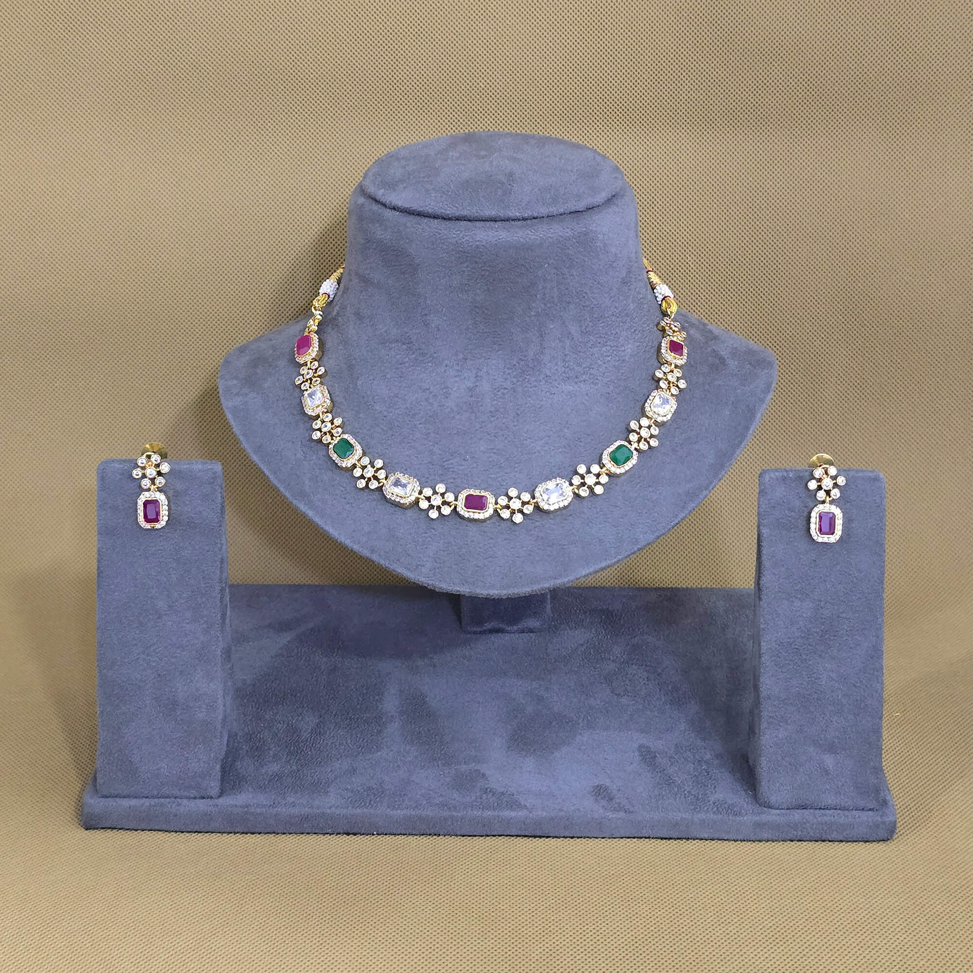Kanhai Jewels offers an exclusive collection of finest quality crafted Fashion Jewellery in various colors. We make sure that our collection of Antique Classic Necklace Set With Matte Gold Plating are beautiful, elegent & will surely galvanize you, because our products are unique, comfortable, fashion forward & very popular for the rich look. Base Metal of our product is Alloy, i.e Mixing of Copper & Brass. We pack all the products using quality packaging material to ensure safe and secure transportation.